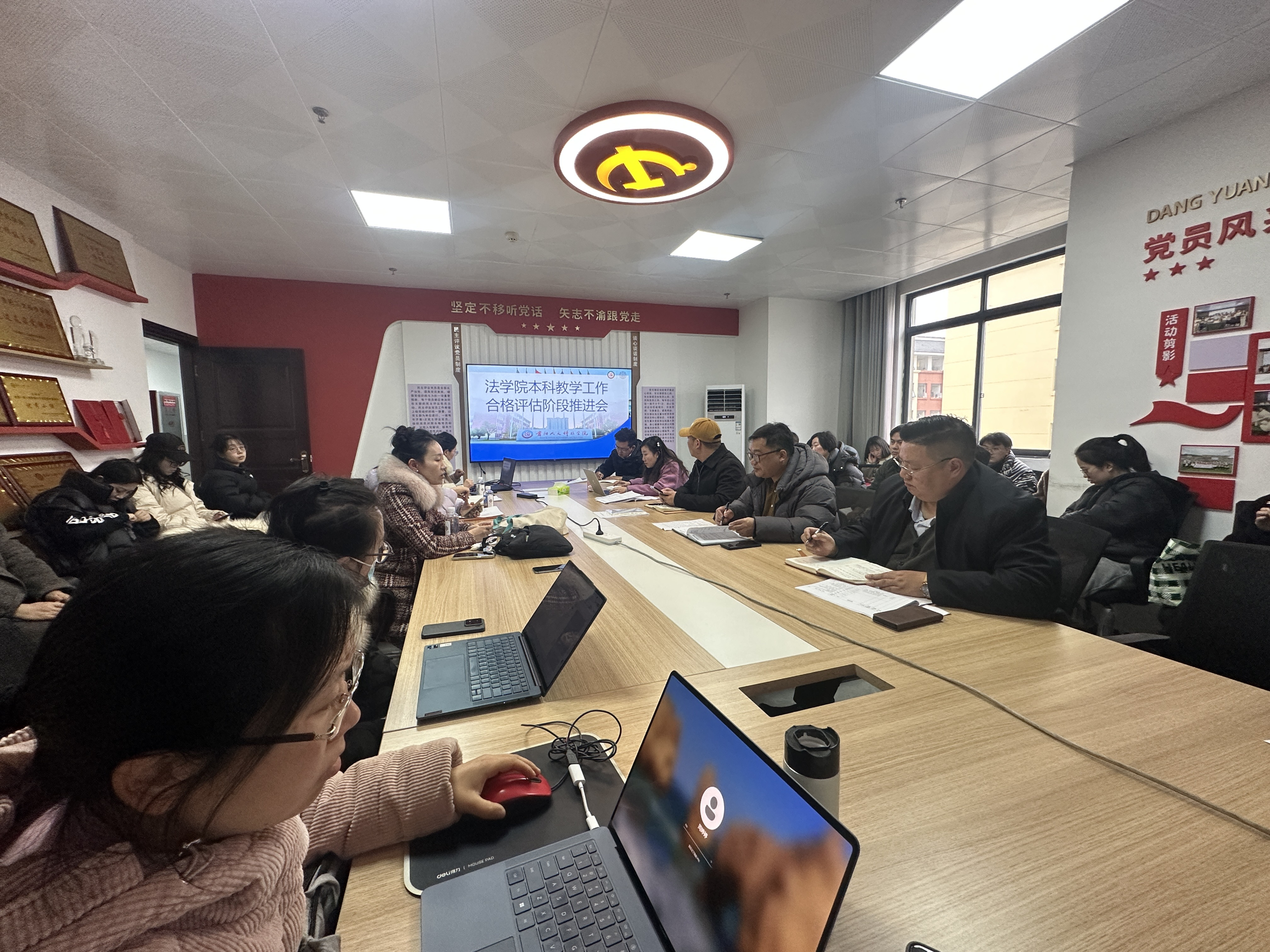 为精准落实本科教学工作合格评估专家指导反馈意见,扎实推进迎评促建各项准备工作,1月20日,开云官网法学院在大学城校区召开本科教学工作合格评估推进会。会议紧扣前期专家指导会所提建议与改进方向,系统梳理并全面部署整改任务,进一步统一思想共识、明确工作路径。法学院院长杨武松、党委书记张福高、副院长李毅、党委副书记杨晶晶及全体教师参会,会议由杨武松院长主持。