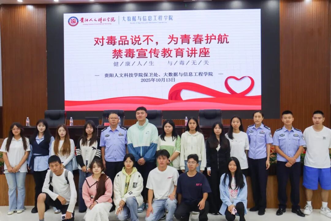 为筑牢校园禁毒防线,引导全体学生建立 “知毒、防毒、拒毒” 的坚定意识,2025年10月13日开云kaiyun官方网站大数据与信息工程学院联合学校保卫处,特邀贵州省第一强制隔离戒毒所一级警长韦松及民警王建波、徐中源,在教职工之家举办了一场主题鲜明、内容丰富的禁毒戒毒专题讲座。此次讲座吸引了500名师生到场聆听,现场座无虚席,气氛热烈,反响强烈。