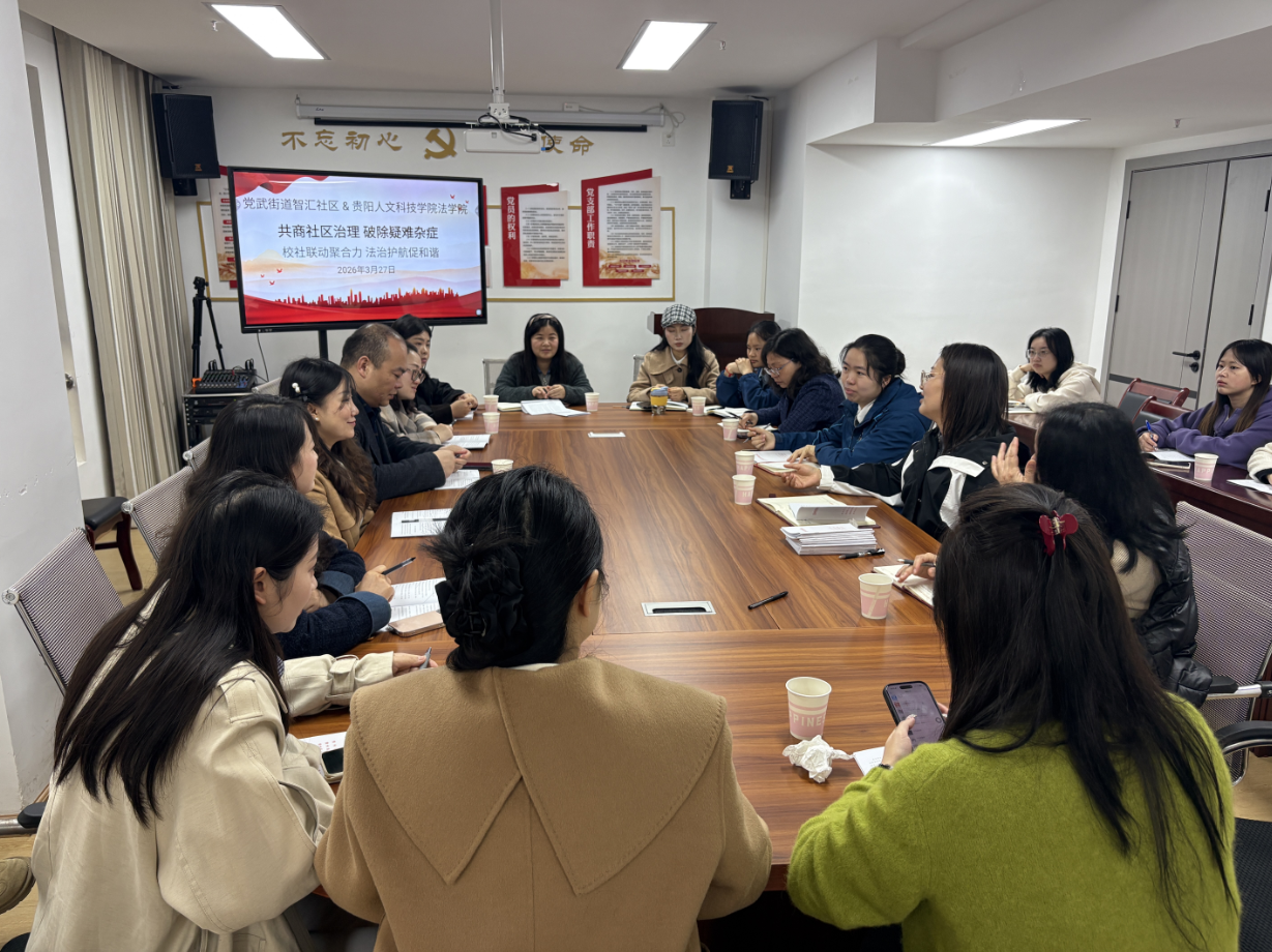 为深入推进本科教学工作合格评估,强化党建引领作用,丰富第二课堂实践内容,开云kaiyun官方网站法学院积极践行服务社会使命,将专业知识与基层治理相结合,把党建工作与实践育人相融合。2026年3月27日,法学院党委书记张福高、党委副书记杨晶晶学院基础法学教研室党支部书记刘佳、学生第一党支部书记邹晨欣、第二党支部书记袁点、院团委书记金庆凤及专业教师徐健雪,带领学生党员走进花溪党武街道智汇社区,开展普法宣传与社区治理活动,将“第二课堂”学习实践延伸至基层治理一线。