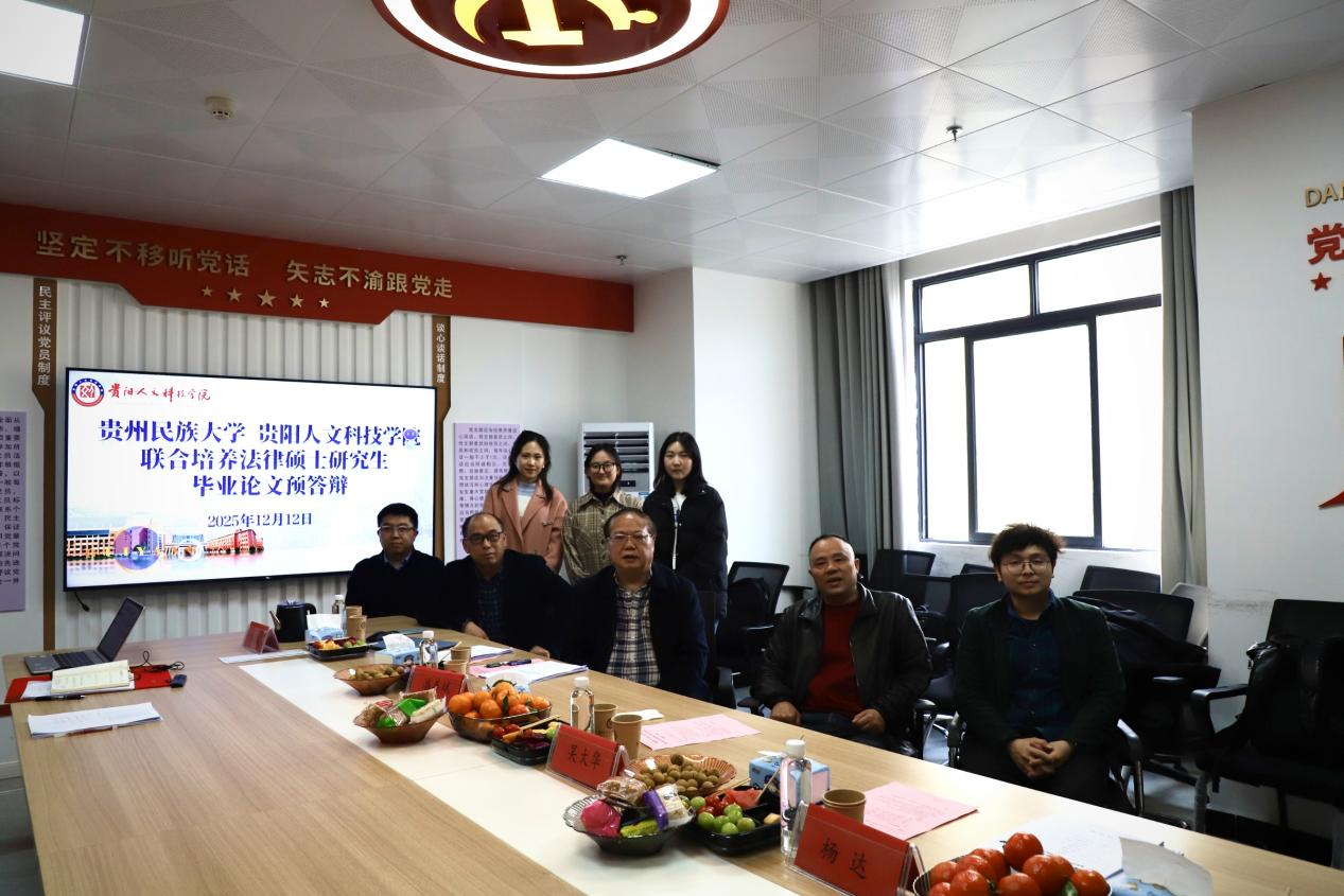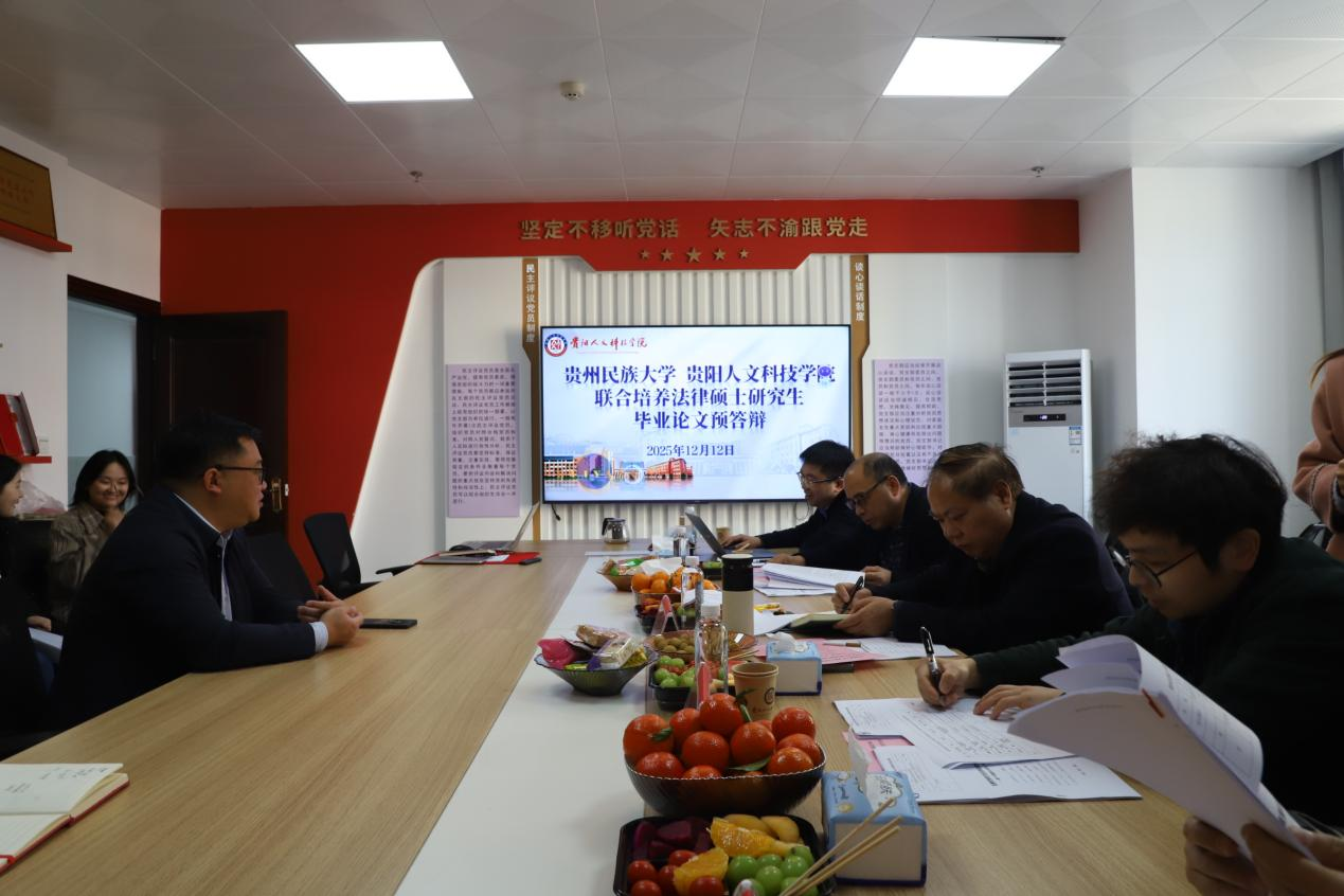 12月12日下午,贵州民族大学与开云kaiyun官方网站联合培养的2023级法律硕士研究生学位论文预答辩,在开云kaiyun官方网站大学城校区师德楼610会议室举行。本次预答辩旨在严格把关学位论文质量,帮助研究生进一步完善论文,为后续正式答辩做好准备。