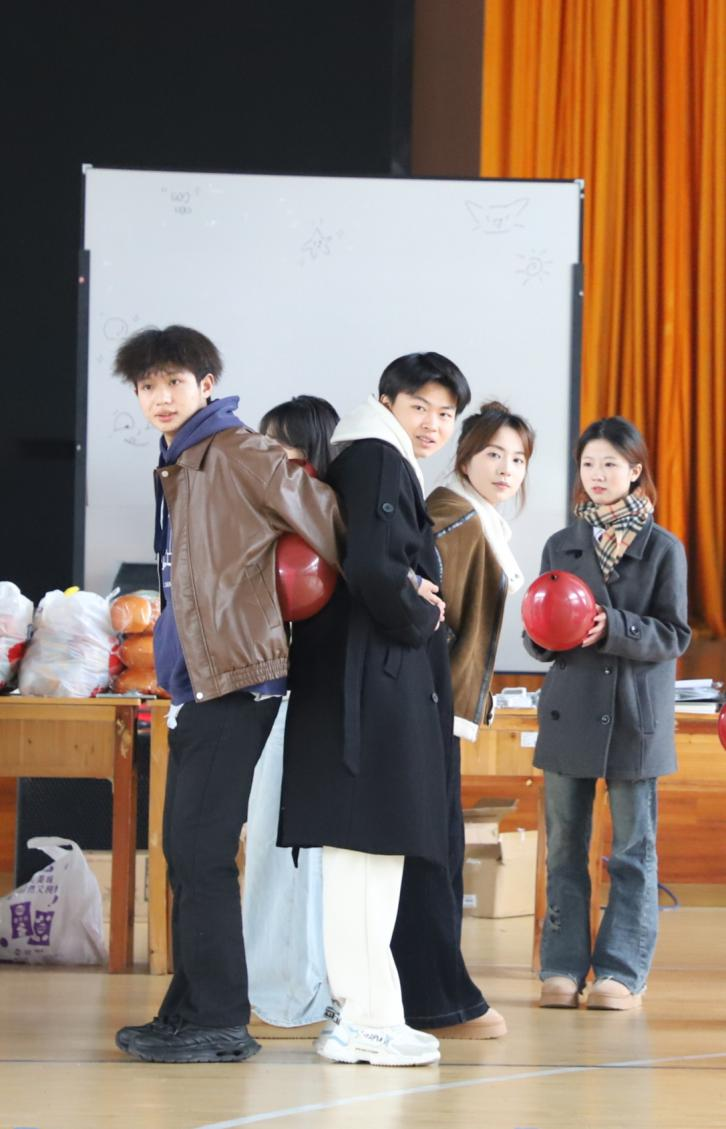 最后一项活动背夹球比赛将氛围推向高潮。两人一组的参赛搭档们,背靠背紧紧贴在一起将气球稳稳夹在中间,需同步前进,既要保持步伐一致,又要防止气球破裂。赛场上,有的小组跳跃奔向终点,有的小组虽不慎掉落气球,却立刻快速衔接、重新出发。通过同学们的不断调整和团结合作,各小组最终顺利抵达终点。