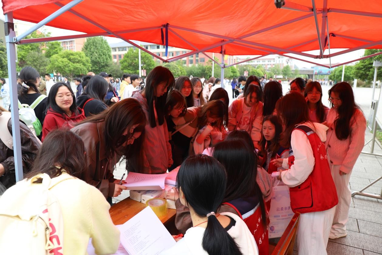 上午9点,活动在学校中心广场拉开帷幕。学校中心广场上人头攒动,现场气氛活跃,法学院志愿者搭建起普法宣传展台,精心设计的知识产权知识竞答环节吸引了大量师生参与。题目涵盖了《著作权法》《专利法》《商标法》等法律法规,题目贴近生活,兼具了趣味性和教育性,参与者通过答题赢取小奖品。用趣味活动代替单向灌输,这种“以赛促学”的方式能更好的激发学生们对知识产权法的兴趣。活动现场,同学们纷纷表示“原来网络转载他人作品也可能构成侵权!”“竞答不仅仅让我意识到保护知识产权的重要性,还学到了很多实用法律技巧。”