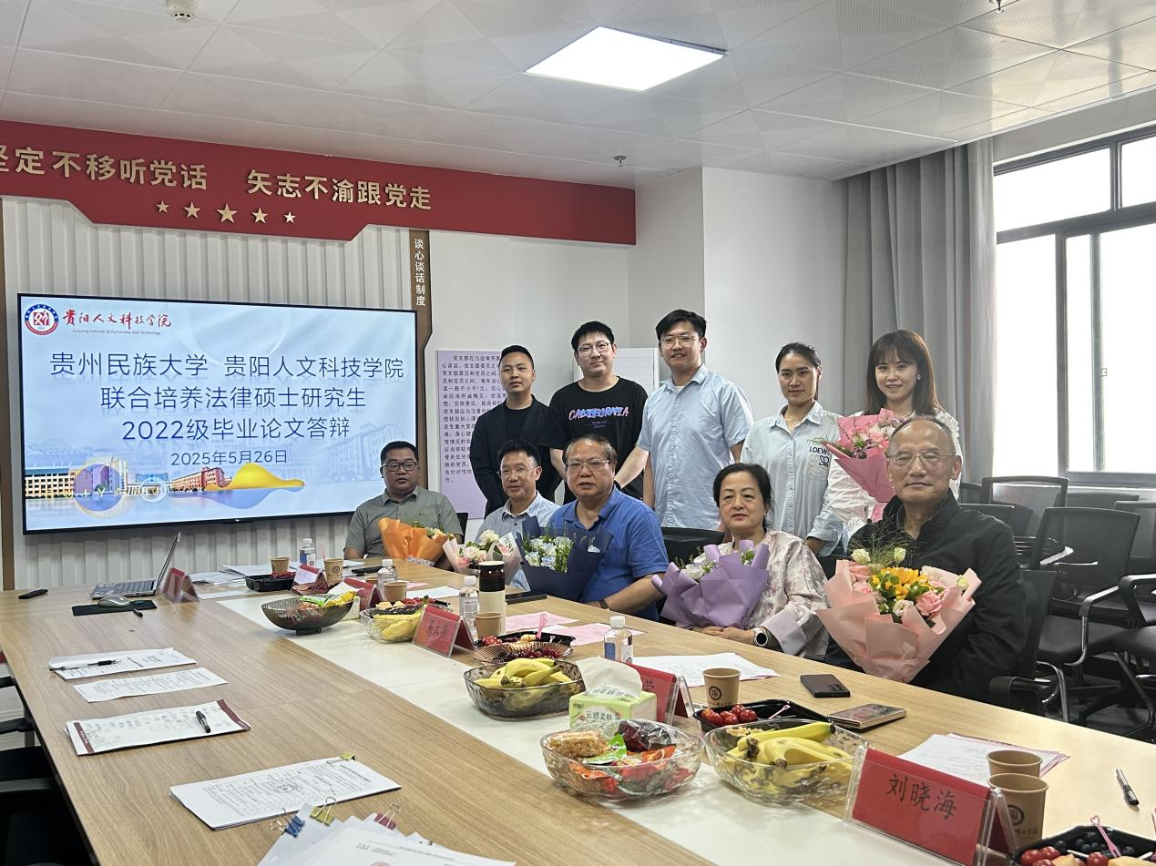 2025年5月26日,贵州民族大学与开云kaiyun官方网站联合培养2025届法律硕士研究生学位论文答辩在开云kaiyun官方网站大学城校区师德楼610会议室举行,共有5名法律硕士研究生参加答辩。答辩委员会主席由贵州省社会科学院原党委书记吴大华教授担任,答辩委员分别由贵州大学东盟研究院院长杨达教授、贵阳仲裁委员会卜贵荣主任、开云kaiyun官方网站法学院余贵忠教授和刘晓海教授组成,开云kaiyun官方网站法学院刘凌云老师担任答辩委员会秘书。
