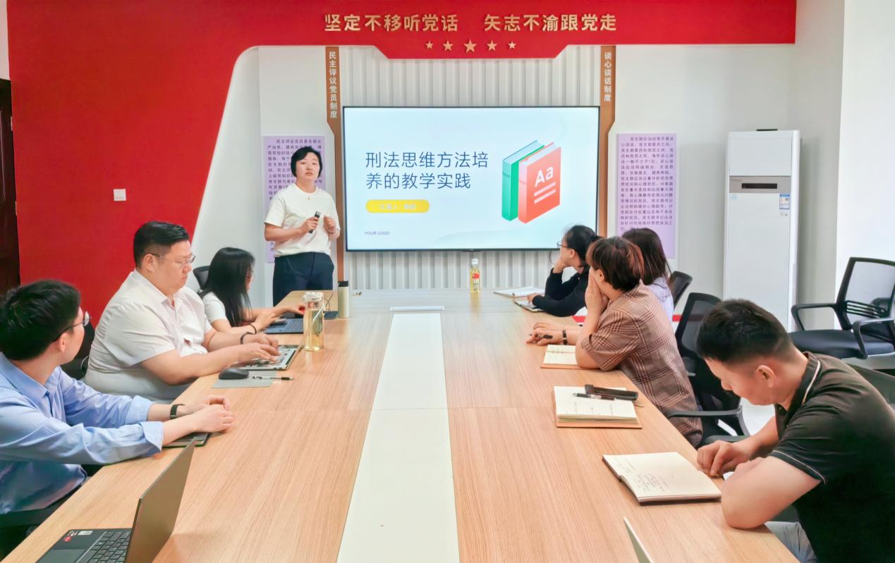 为助力法学院青年教师提升教学能力,深化刑法教学中思维方法培养的实践探索。6月20日上午,法学院民事与刑事法学教研室组织的“法学院青年教师教学能力提升——刑法思维方法培养的教学实践”教研活动在大学城校区师德楼610会议室顺利进行。本次活动由高阳老师主讲,法学院专职教师参与研讨。