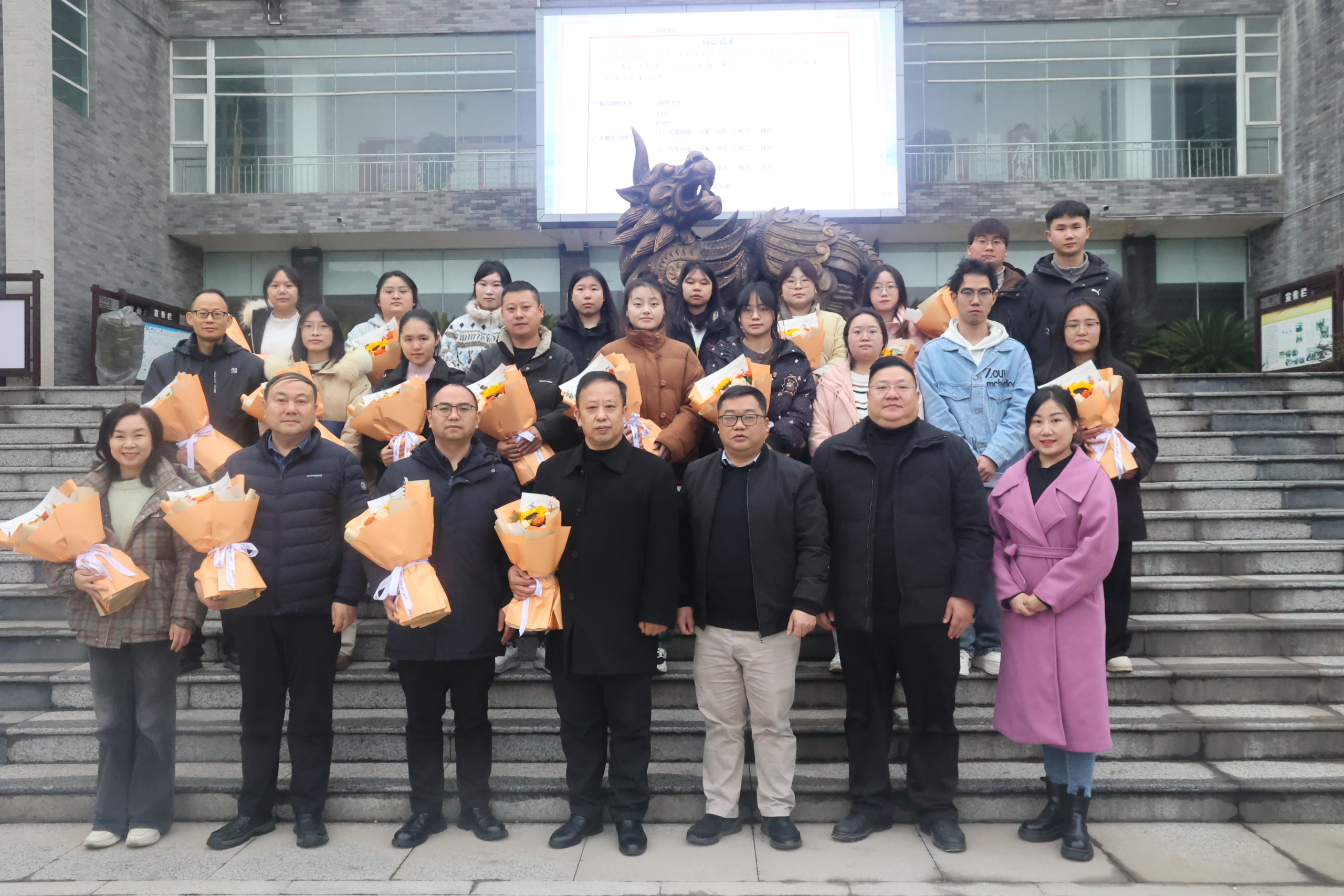 杨武松院长在讲话中衷心感谢修文县人民法院对实习工作的大力支持。他指出,法学教育的生命力在于与司法实践的深度融合,此次实习不仅提升了学生的专业能力,更强化了他们的职业认同与法治信仰。他表示,学院将持续优化人才培养体系,推动课程内容与实务需求对接,完善“双导师制”,并积极探索实习与就业衔接机制。未来,法学院将与修文县法院携手深化合作,在共建实践基地、共育师资队伍、共研实务课题等方面拓展路径,共同打造校院协同育人的典范,为地方法治建设输送更多高素质应用型人才。