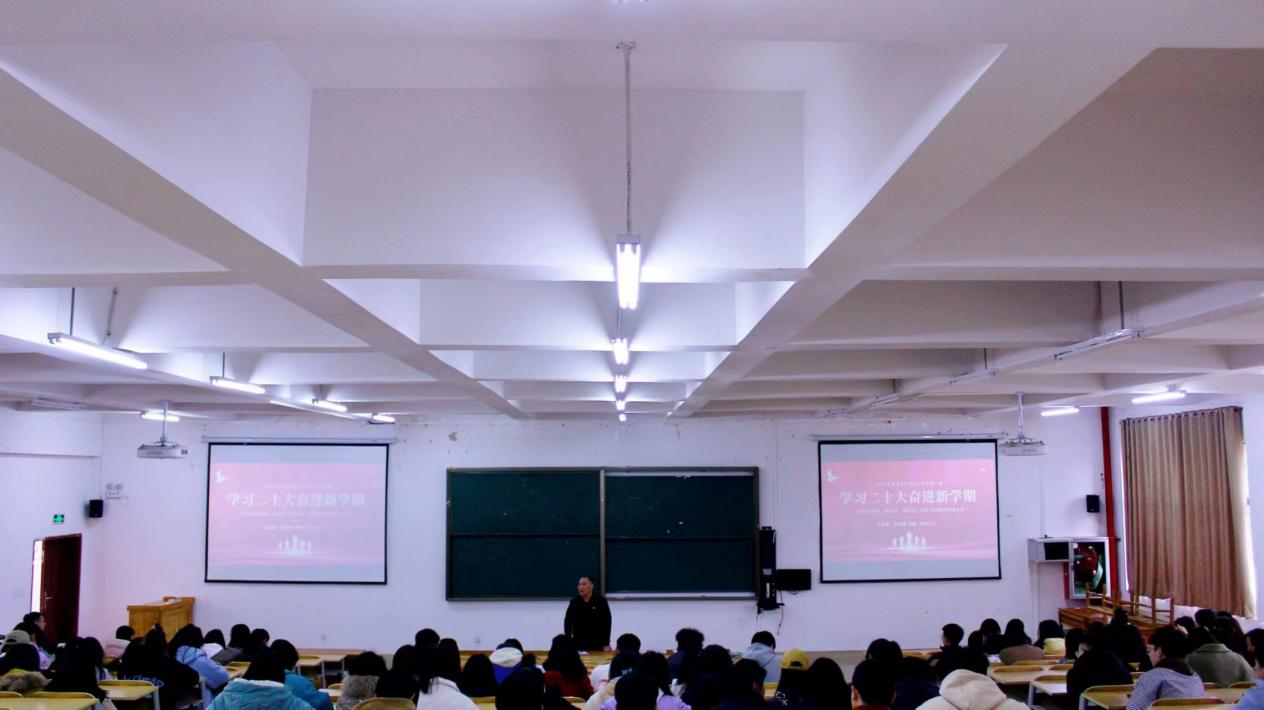 2023年3月2日,开云kaiyun官方网站法学院2023年春季开学第一堂思政课“学习二十大,奋进新学期”课程活动在大学城修身楼108开讲。本次开学第一课由法学院党总支书记张福高同志讲授,听讲本次“开学第一课”的有2020级法学多个班级的的全体学生。