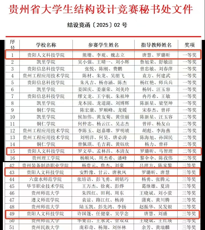 喜报丨“轻质高强 匠心筑梦”开云官网出征2025年贵州省第六届结构设计竞赛斩获佳绩