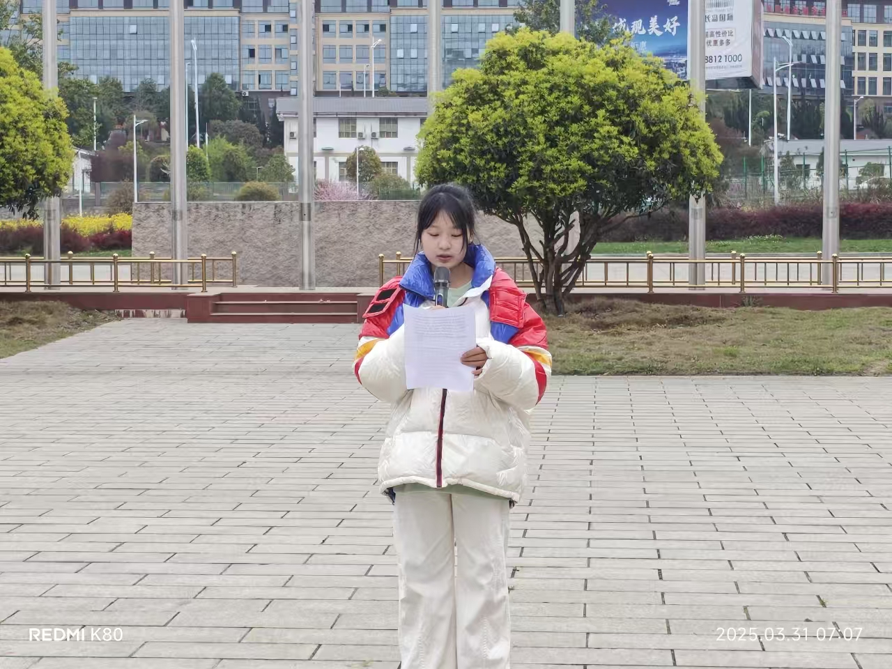2023级工程管理2班李思圆同学作国旗下发言。她提到:“国家安全不仅关系到国家的主权和领土完整,也与每个人的生活息息相关。大学生作为社会未来的栋梁,更应积极学习国家安全知识,提高防范意识。她呼吁同学们从自身做起,在网络生活中保持警惕,不轻易泄露个人信息,共同维护国家信息安全”。