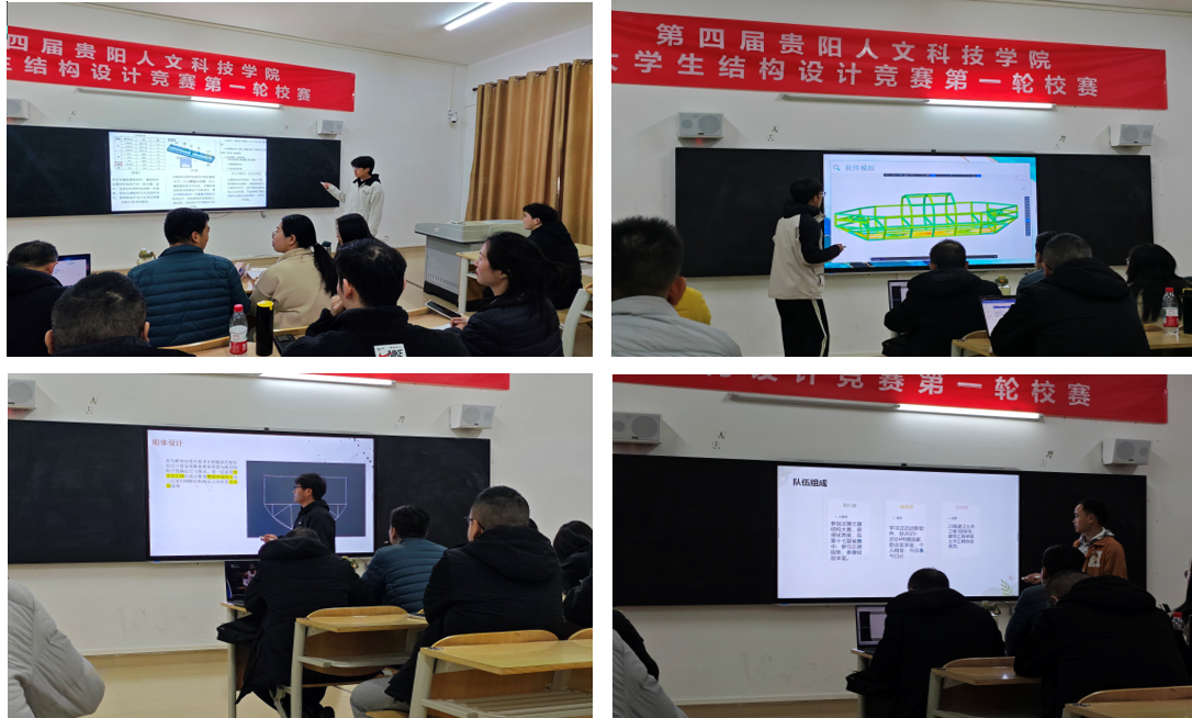 接着土木工程教研室副主任罗璐昕老师宣布比赛开始,各参赛队伍依次对作品进行了展示。通过精心准备的PPT演示,选手们系统阐释了对赛题的理解、团队的设计思路、技术实现方案以及创新突破点,全面展现了严谨的学术态度和卓越的工程实践能力。