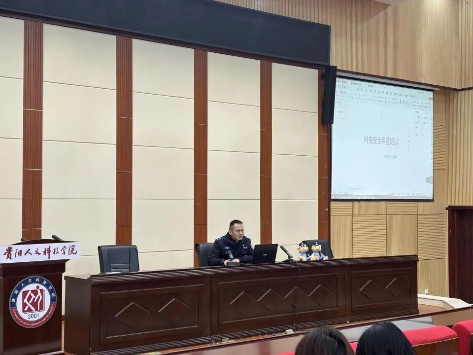 为深入推进平安校园建设,提高学生的反诈防骗能力,20251120日上午1030分,建筑工程学院携手保卫处,特别邀请贵安新区公安局思雅派出所的反诈民警,于图书馆二楼学术报告厅共同举办了一场以网络安全与防范电信网络诈骗为主题的讲座。讲座现场气氛热烈,师生代表齐聚一堂,认真聆听警官从专业与实战的视角出发,以实际案例进行释法的专题讲解。