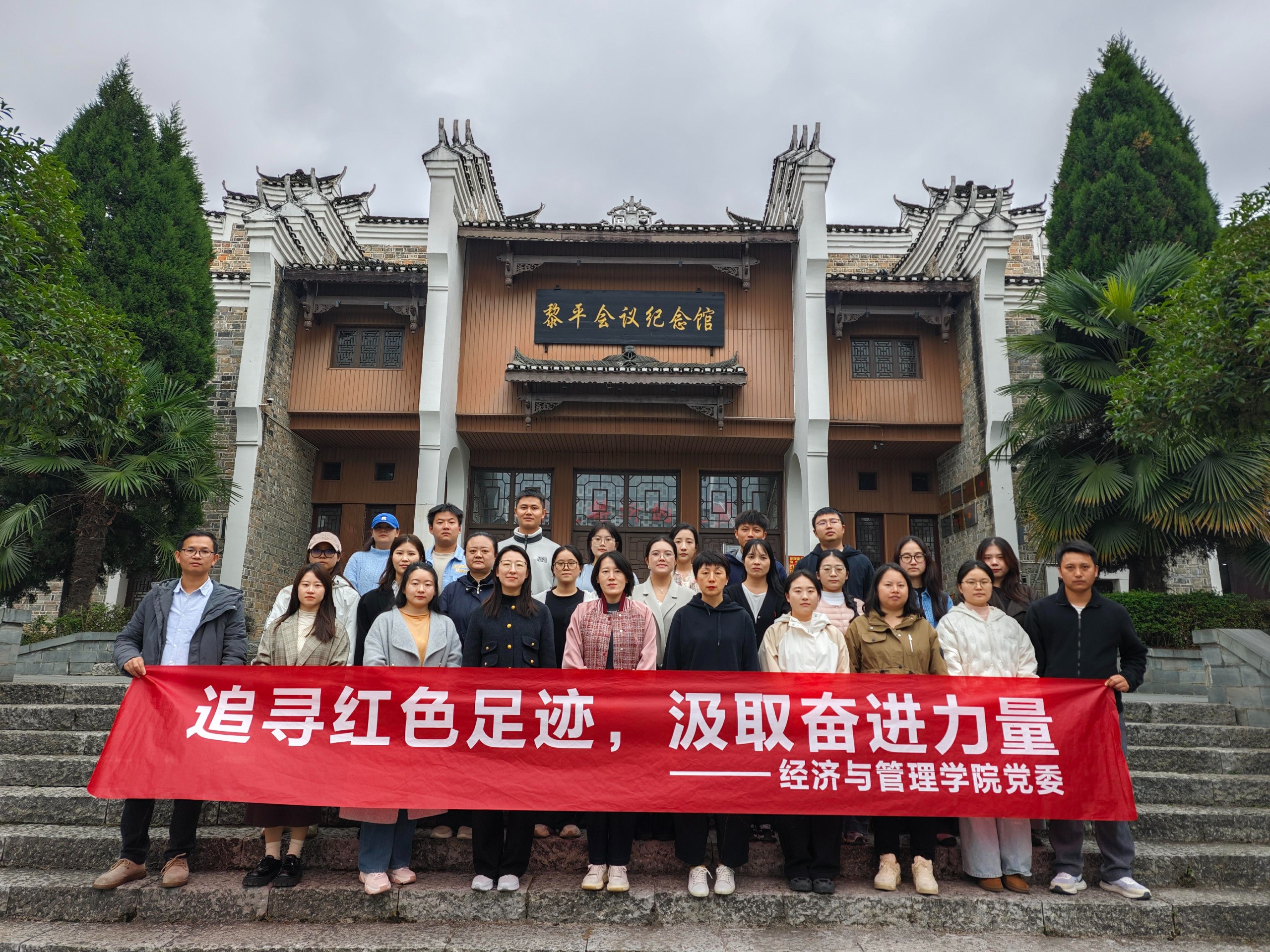 为深入推进党史学习教育,传承红色基因,更好地贯彻落实习近平总书记在贵州考察时的重要讲话精神,推动党建与业务深度融合,2025年10月25日,经济与管理学院党委组织教师党员前往黎平会议会址开展“追寻红色足迹,汲取奋进力量”活动。让党员在红色教育中筑牢理想信念,汲取奋进动能。