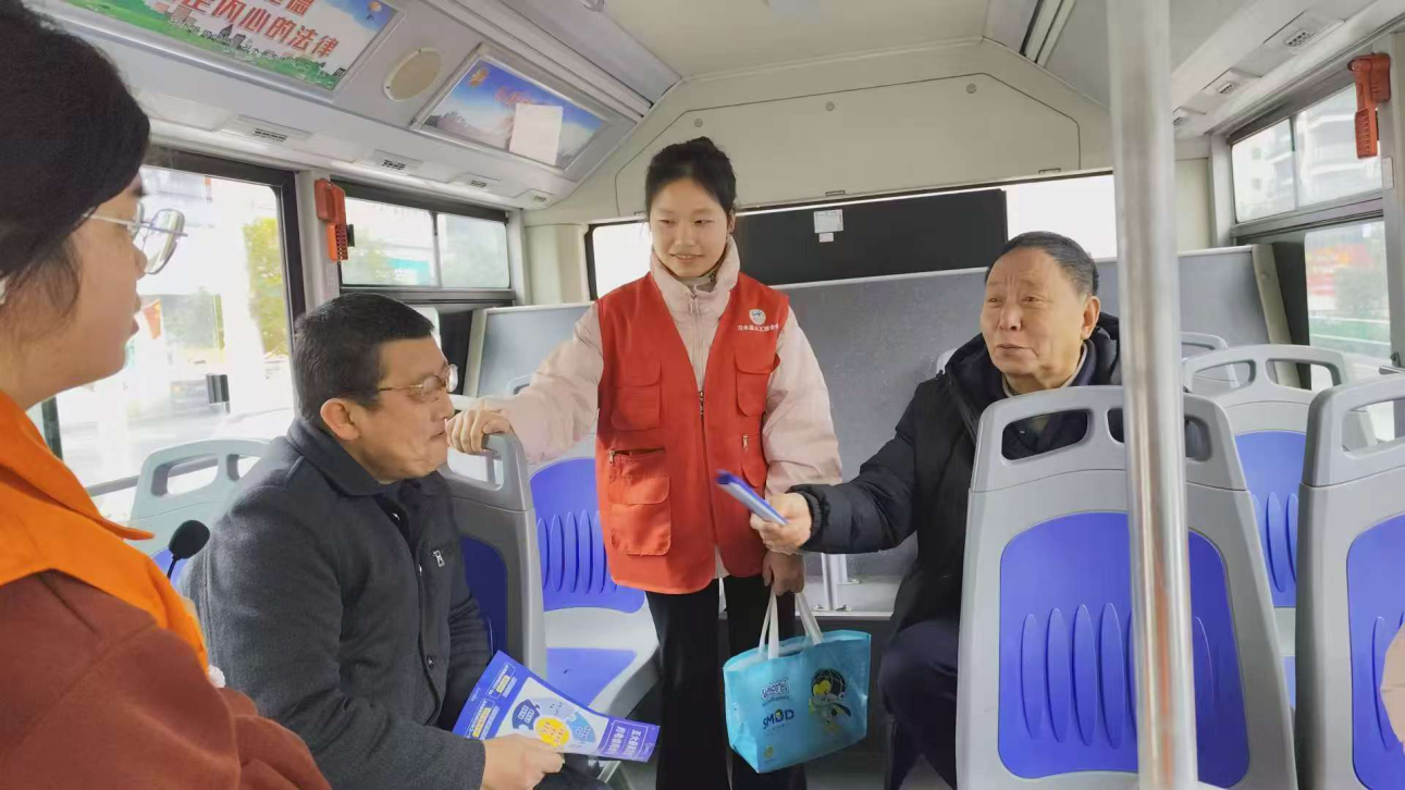 黄国芳同志创新宣传场景登上城区公交车化身“流动宣传员”,向乘客发放宣传单、拆解刷单返利、虚假红包等春节高发骗局,引导群众牢记反诈准则,守护群众“钱袋子”。杨锐同志深入社区、居民楼及年货市场,发放消防宣传资料、张贴海报,普及防火、用电用气安全知识,组织消防器械参观、消防服试穿等体验活动,切实提升群众消防安全意识。