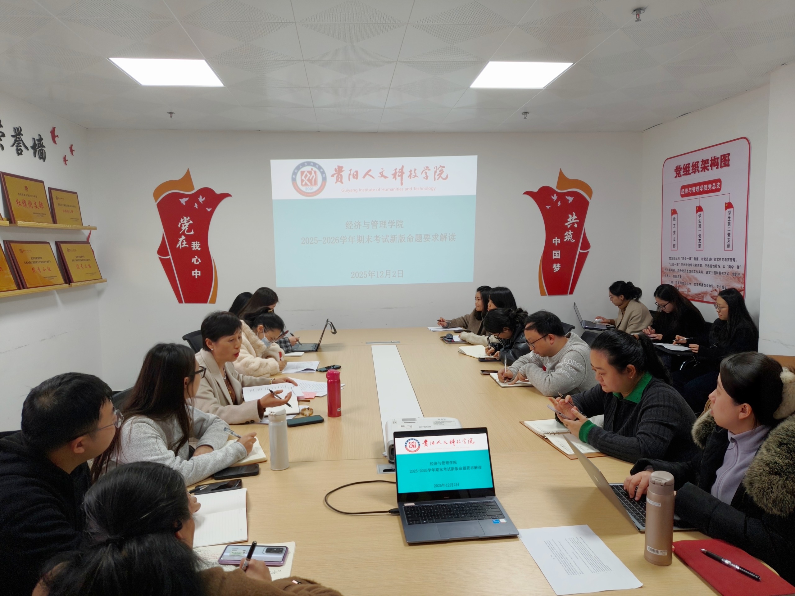 为坚定不移地以本科教学合格评估核心要求为指引方向,全方位、深层次推进基于OBE理念的课程考核改革工作,深入贯彻落实学校《关于2025—2026学年度第一学期期末考试安排的通知》(人文教字〔2025〕100号)文件精神。12月2日,我院于师德楼710会议室召开了新版命题规范与批改工作规范专题解读会。会议由学院副院长陈福娣主讲,学院教师积极参加。