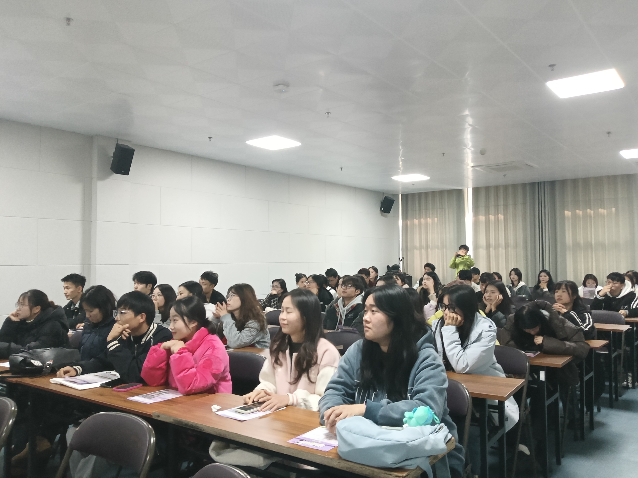 在答疑环节,同学们踊跃提问。企业校园招聘负责人耐心解答大家关心的晋升机制、培训机制、薪资待遇等问题,现场气氛热烈。