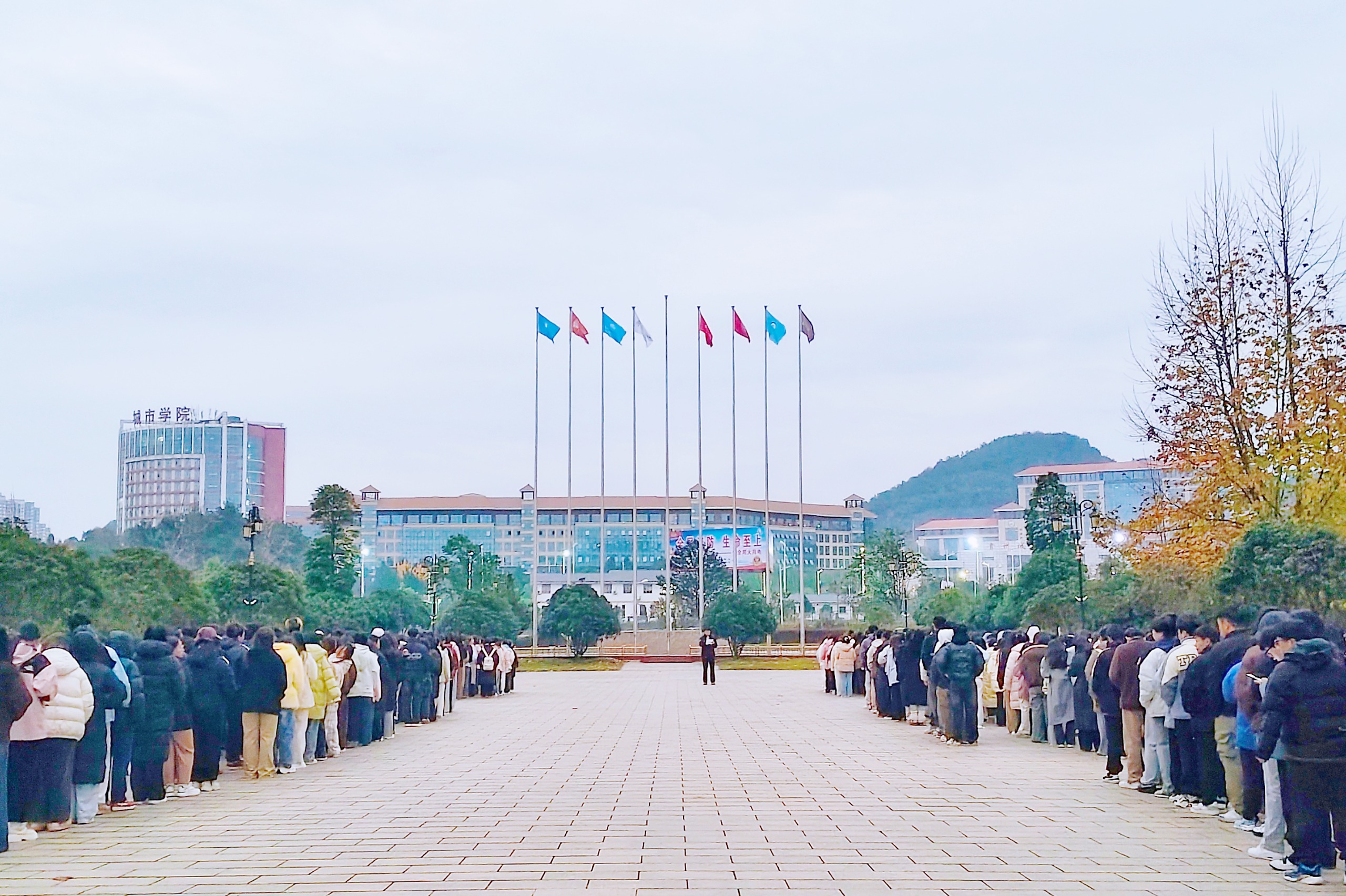 11月24日早晨,经济与管理学院在大学城校区中心广场隆重举行升旗仪式。本次升旗仪式由青年教师代表杨天凤老师、学院全体学生和国旗护卫队共同参与。