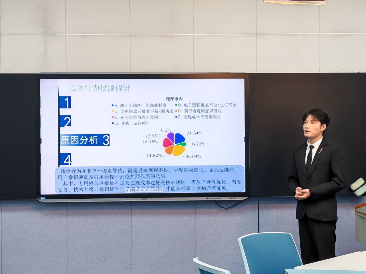 本次大赛设置初赛、决赛环节,最终有10支队伍进入决赛。赛场之上,各参赛队伍依次登台,通过PPT演示系统阐述提案核心。从困境儿童保障到校园治理优化,从非遗文化传承到生态殡葬转型,选手们以清晰的逻辑、详实的数据和独到的见解,将调研成果转化为极具说服力的建言,充分展现了经管学子的专业素养与社会洞察力。