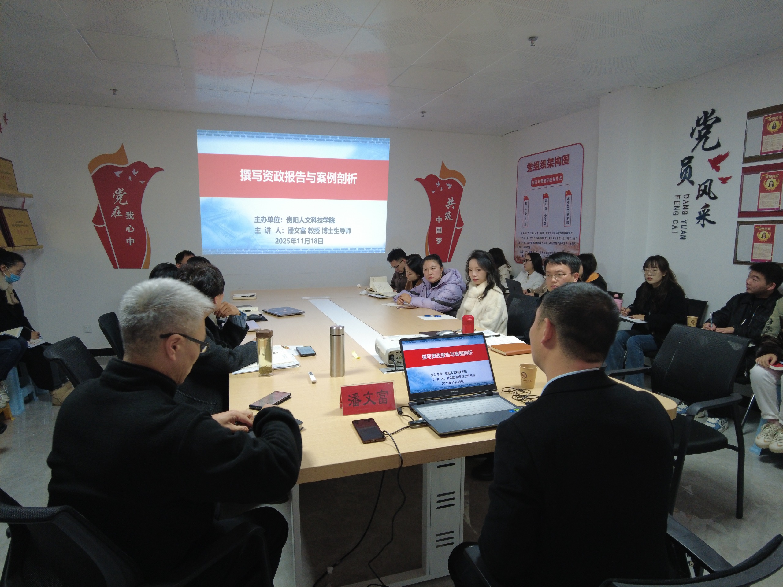 为切实提升教师的资政建言能力与社会服务水平,推动科研成果有效转化。11月18日,我院特邀贵州财经大学潘文富教授在师德楼710会议室作了题为“撰写资政报告与案例剖析”的专题讲座。本次讲座由学院董院长主持,我院教师积极参加。