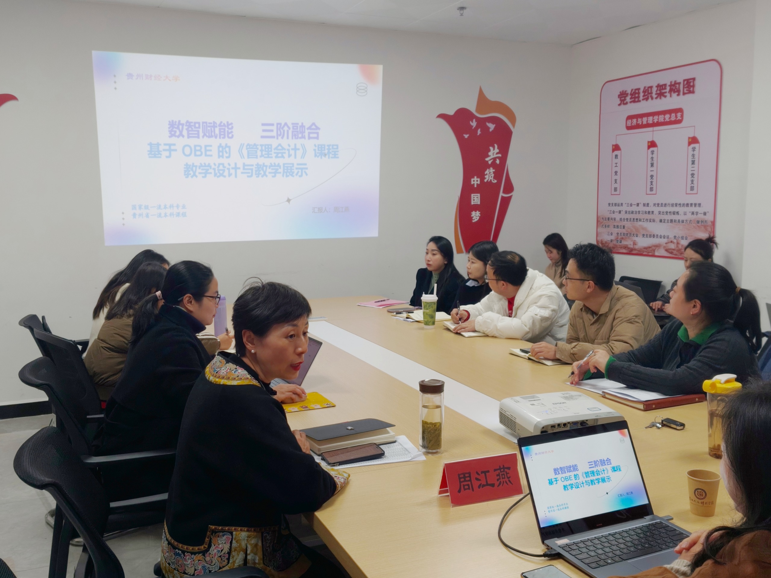 为深化教育教学改革,推动成果导向教育(OBE)理念在课程教学中的深入应用,提升教师教学设计与课堂实践能力。11月25日,我院在师德楼710会议室成功举办了“基于OBE理念的管理会计课程教学设计与教学展示”的专题讲座。特邀贵州财经大学会计学院周江燕教授担任主讲,学院教师积极参与。