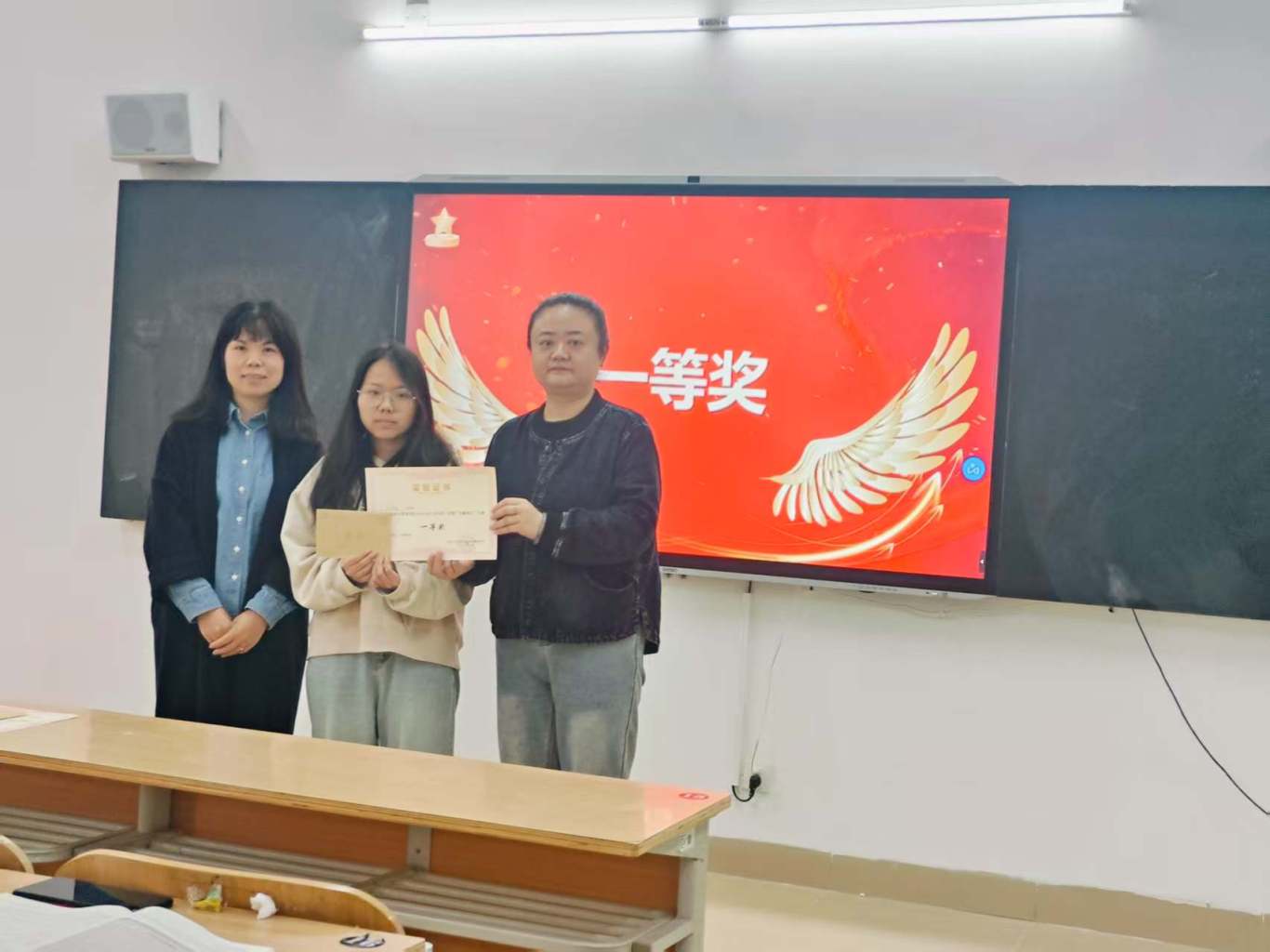 教研室主任及教师代表为获奖学生颁发荣誉证书及奖品。