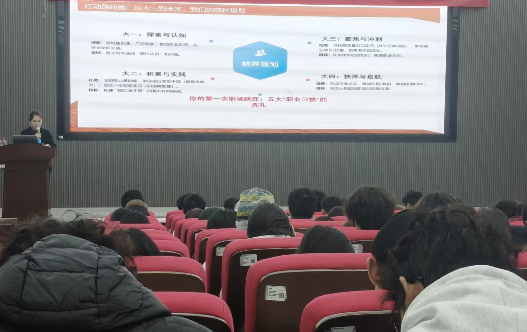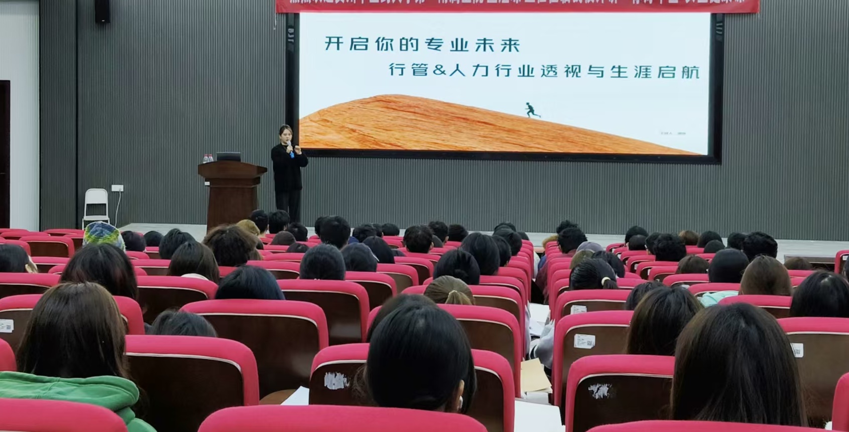 10月27日,学院特邀国家高级职业指导师谭栩老师为2025级行政管理和人力资源管理专业新生开展“开启你的专业未来—行管&人力行业透视与生涯启航”的专题讲座。