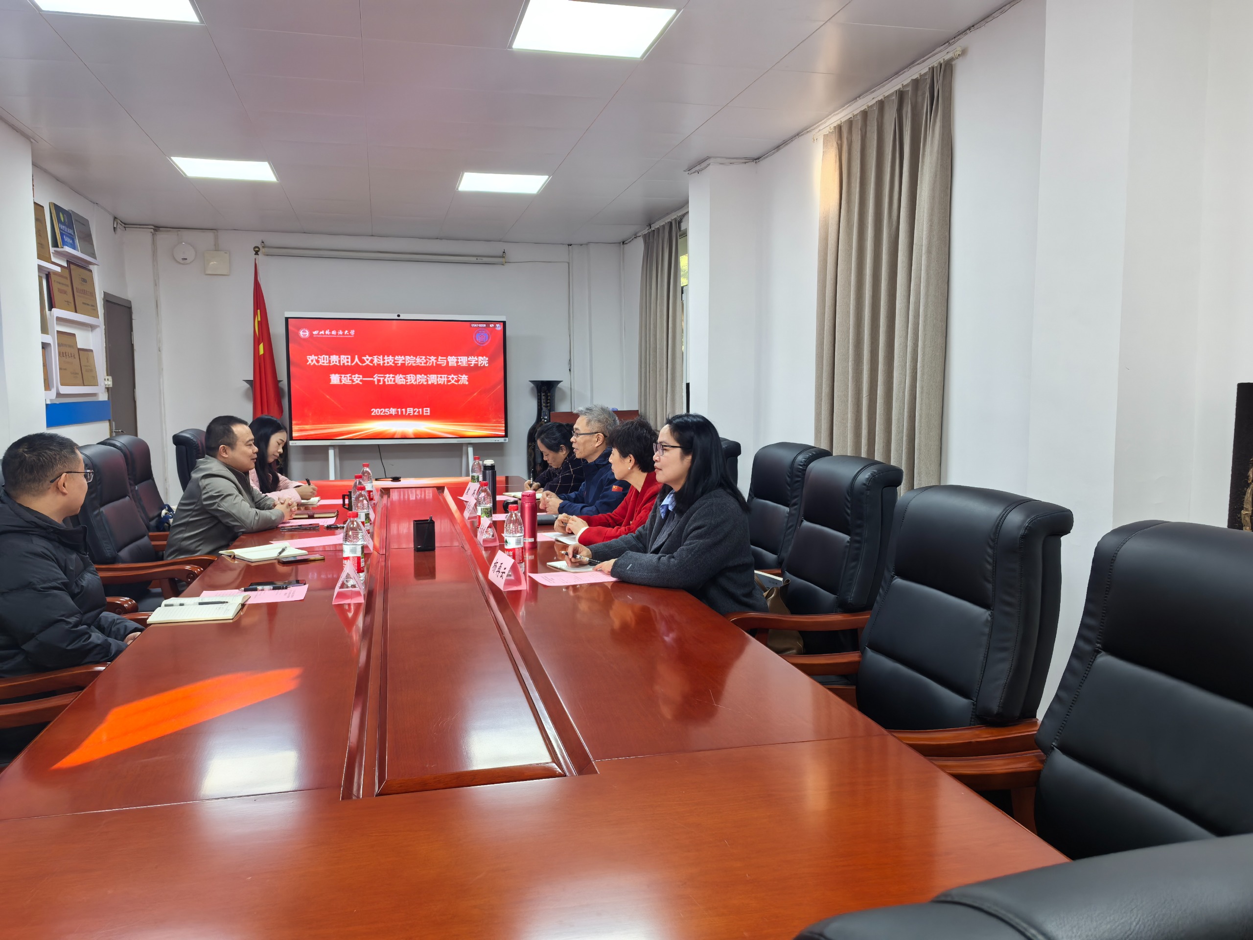 2025年是贯彻全国教育大会精神、落实教育强国建设规划纲要的关键之年,也是“十四五”收官和“十五五”谋划之年,更是面向十年建成教育强国全面布局、高位推进之年。为积极响应教育强国,进一步加强学科建设,提升专业发展水平,学习兄弟院校的先进经验。11月20日,经济与管理学院由董延安院长、陈福娣副院长带队,财务管理教研室主任袁英副教授及骨干教师杨再云一行4人,先后赴重庆理工大学会计学院、四川外国语大学国际工商管理学院开展学科及专业建设研讨交流活动。此次交流旨在搭建校际合作桥梁,借鉴优质办学理念与实践经验,为我院学科专业高质量发展增添新动力。
