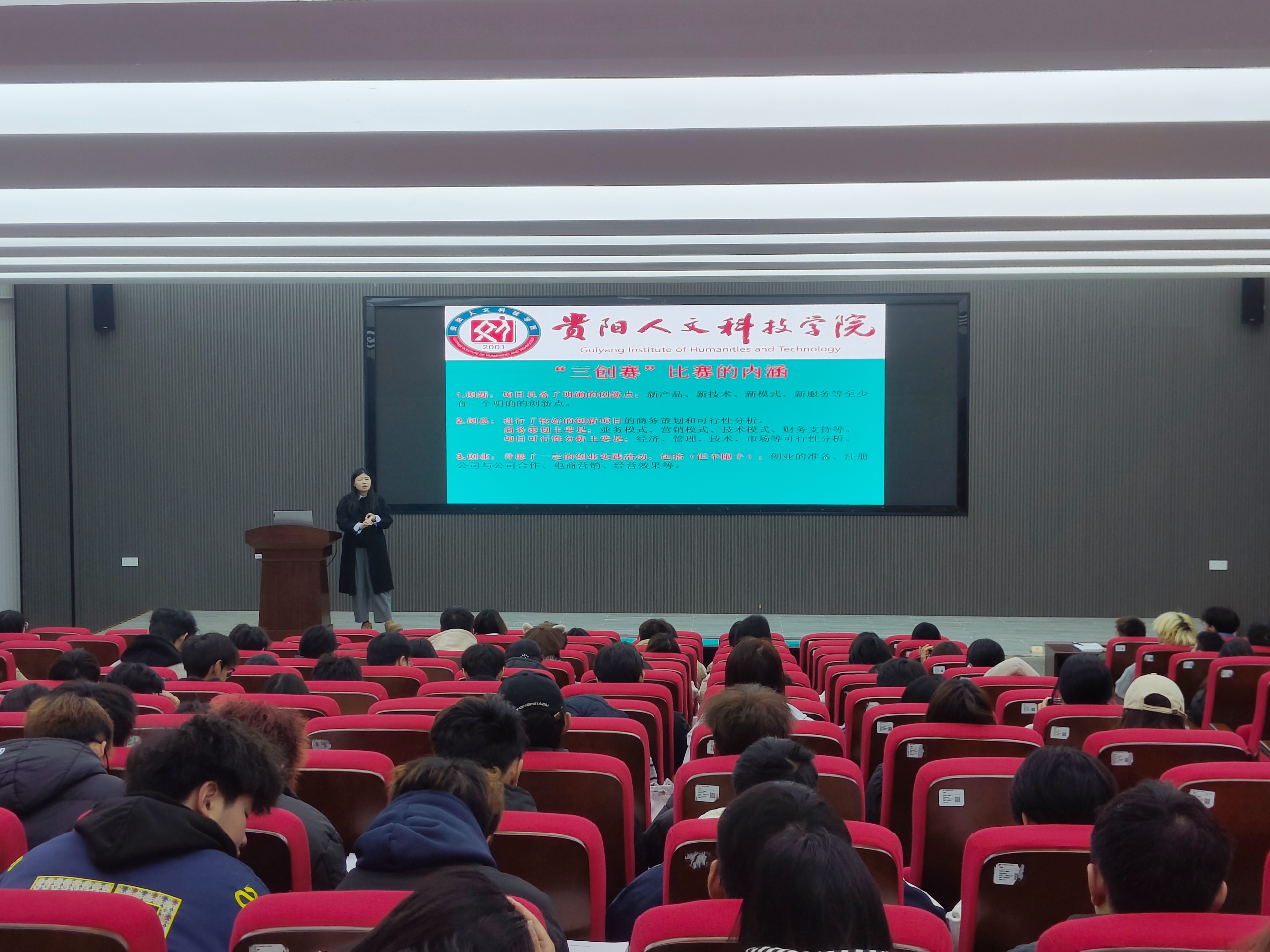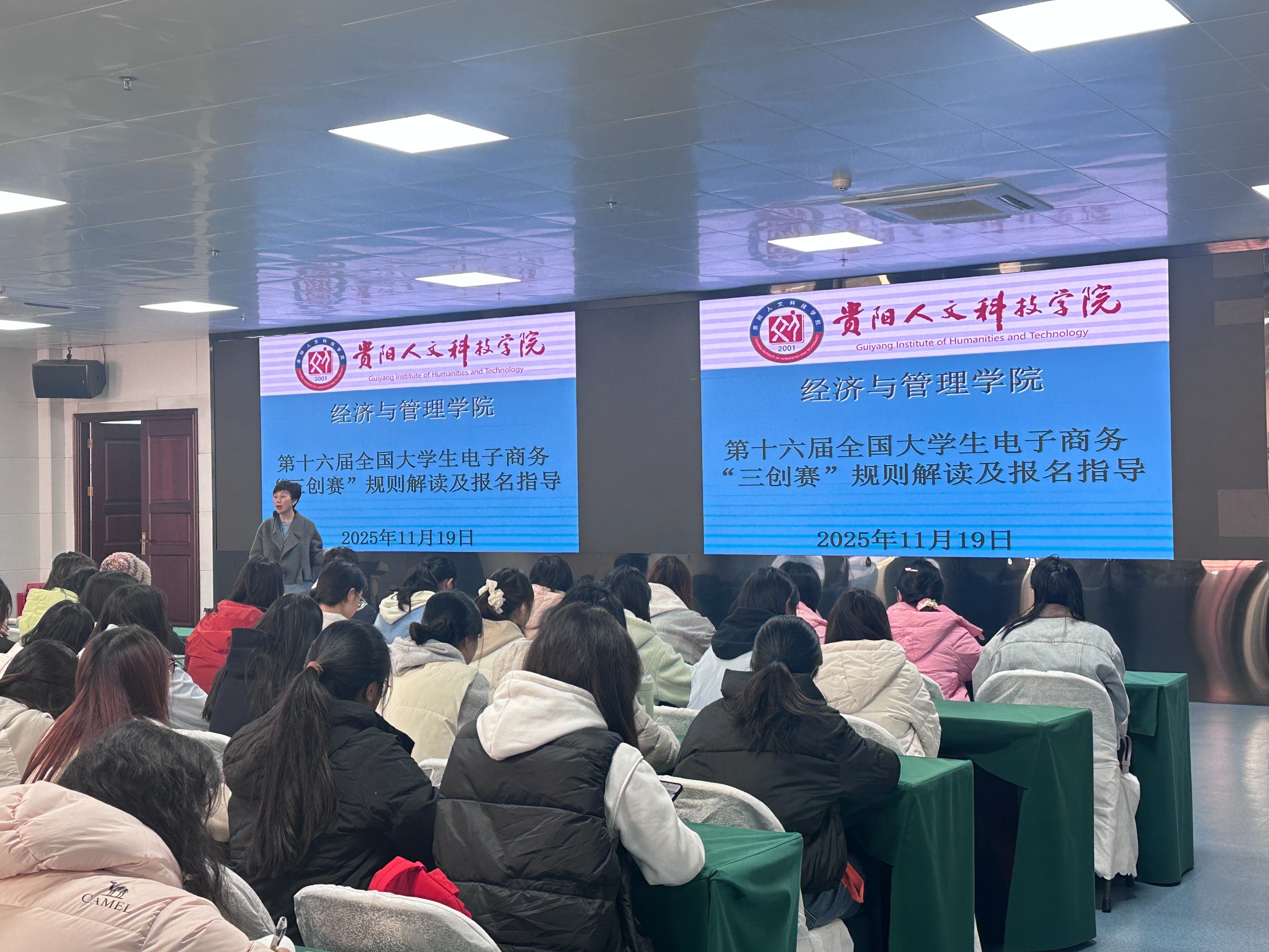 近日,我院于大学城校区、花溪校区成功举办了第十六届全国大学生电子商务“创新、创意及创业”挑战赛(“三创赛”)校级赛宣讲会。此次宣讲会吸引了来自全校各学院的学生,现场座无虚席,气氛热烈。