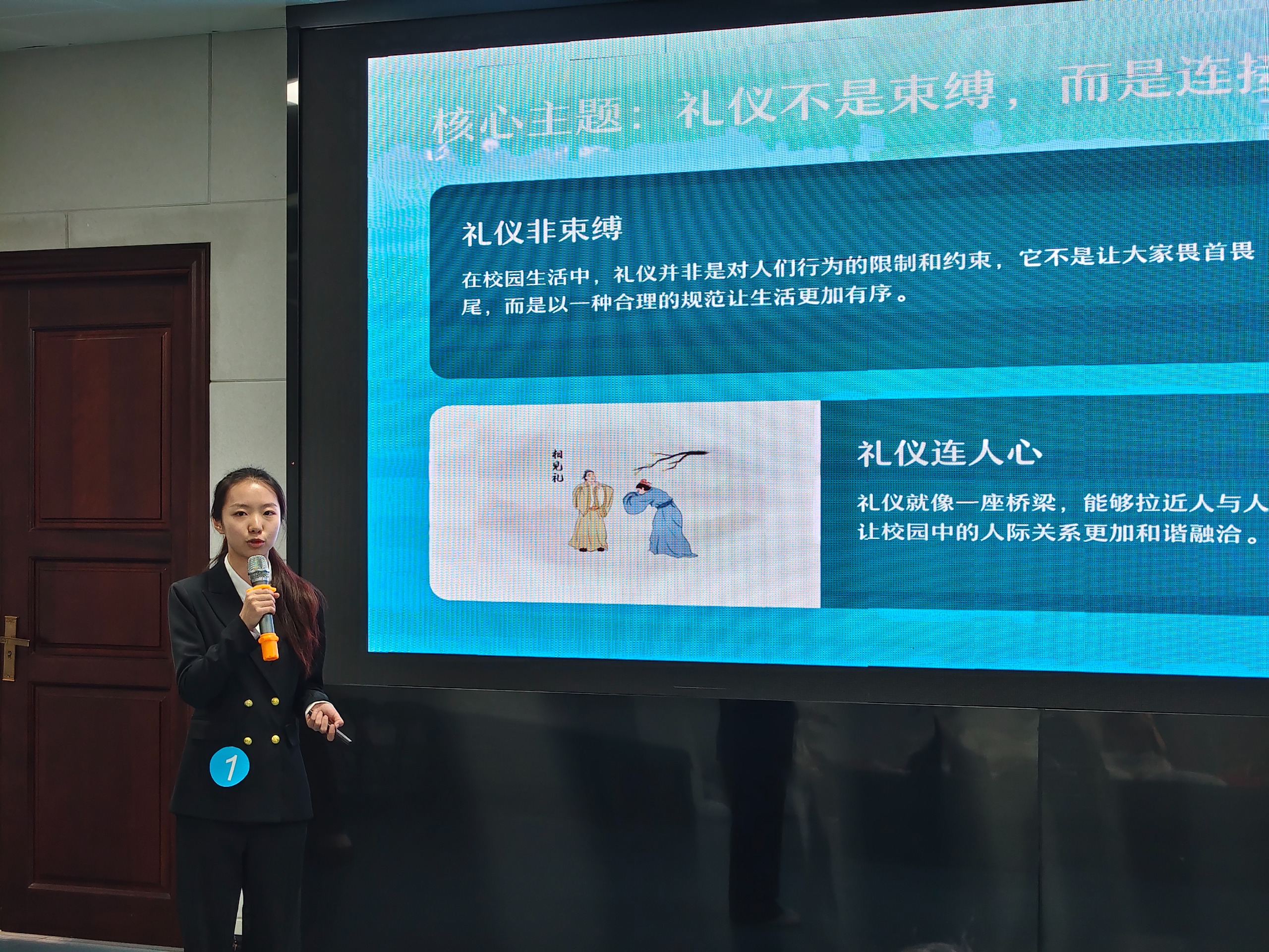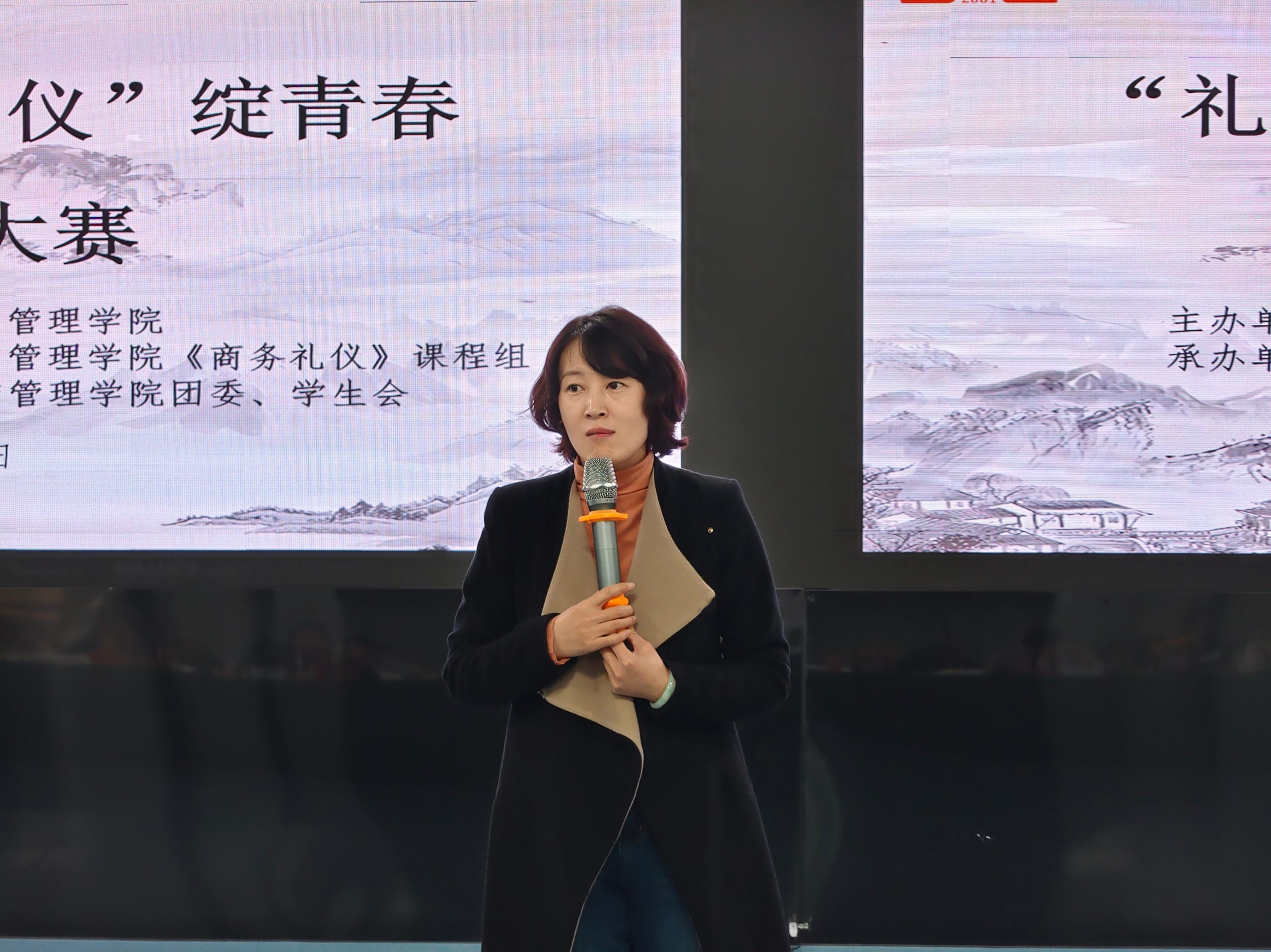 学院田丹书记作比赛致辞。她深刻阐述了礼仪文化在个人成长成才、社会交往实践中的重要价值与时代意义,勉励同学们以赛促学、以学践礼,将礼仪规范内化于心、外化于行,在涵养文明素养中锤炼优良品格。