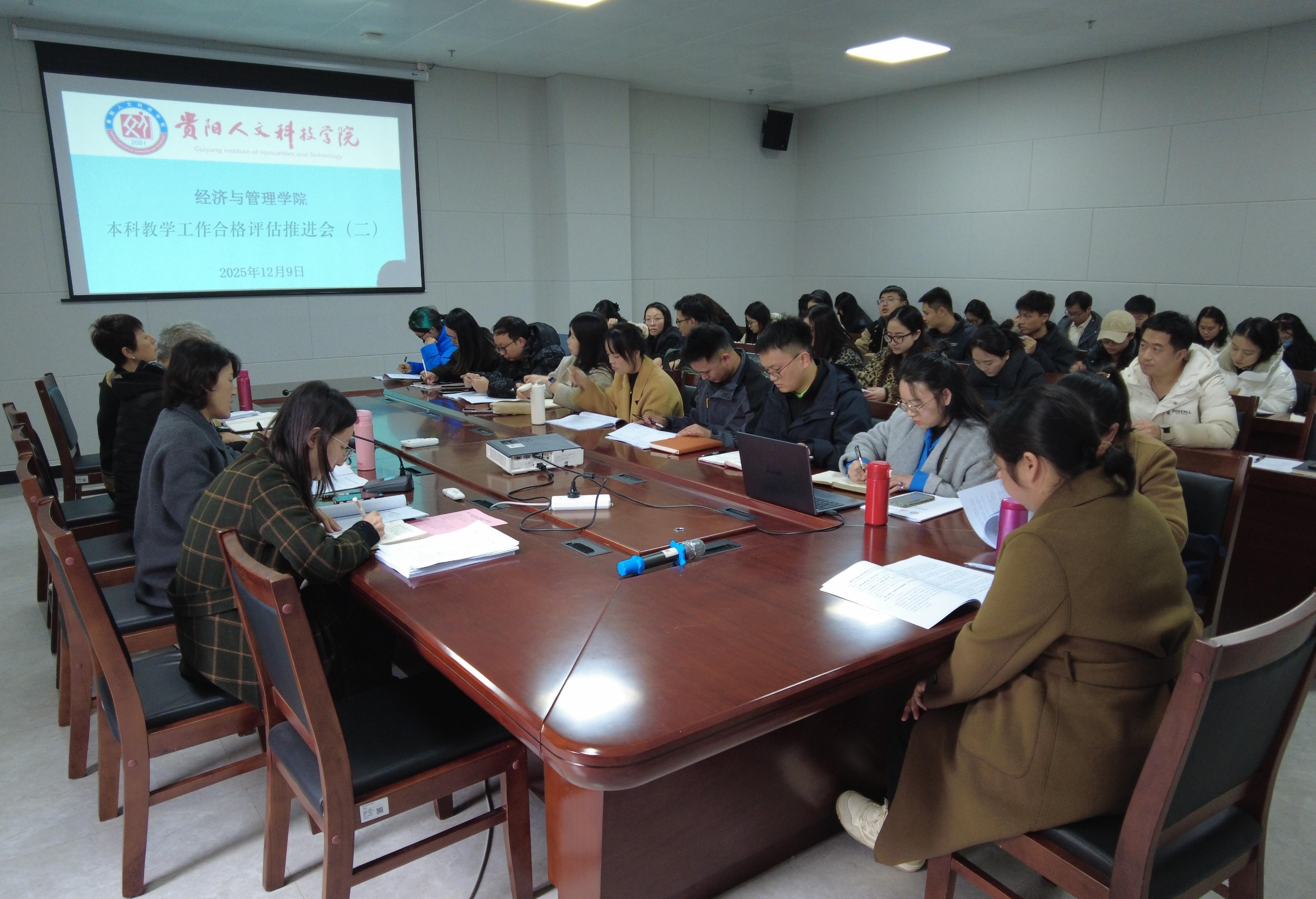 为深入贯彻落实学校本科教学工作合格评估总体部署,全面启动并扎实推进学院评建工作,12月9日下午,经济与管理学院在师德楼301会议室召开本科教学合格评估工作推进会。会议由学院党委书记田丹主持,学校常务副书记陆官虎莅临指导,学院全体教职工参加会议。