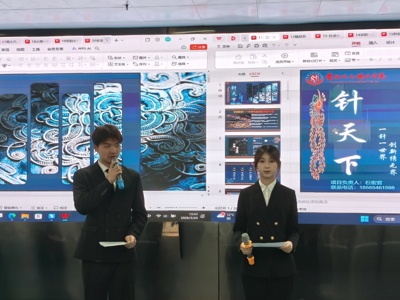各参赛团队依次登台,展示了各式各样、丰富多彩的项目成果。通过围绕项目背景、核心技术、商业模式、社会价值等方面进行了精彩的路演陈述。参赛项目紧扣时代脉搏,涵盖了数字经济、乡村振兴、文化创意、智慧服务等多个领域,充分展现了我院学子敏锐的洞察力、扎实的专业功底和敢闯会创的精神风貌。