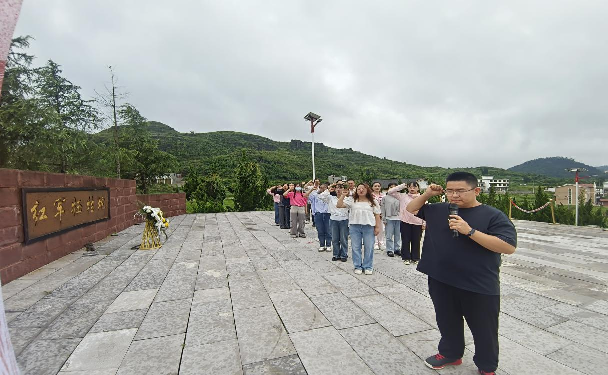 在庄严的红军牺牲地旧址前,同志们整齐列队,向烈士敬献花篮,随后全体人员向烈士鞠躬默哀,并在党总支副书记唐林鹏同志的带领下进行了集体宣誓。