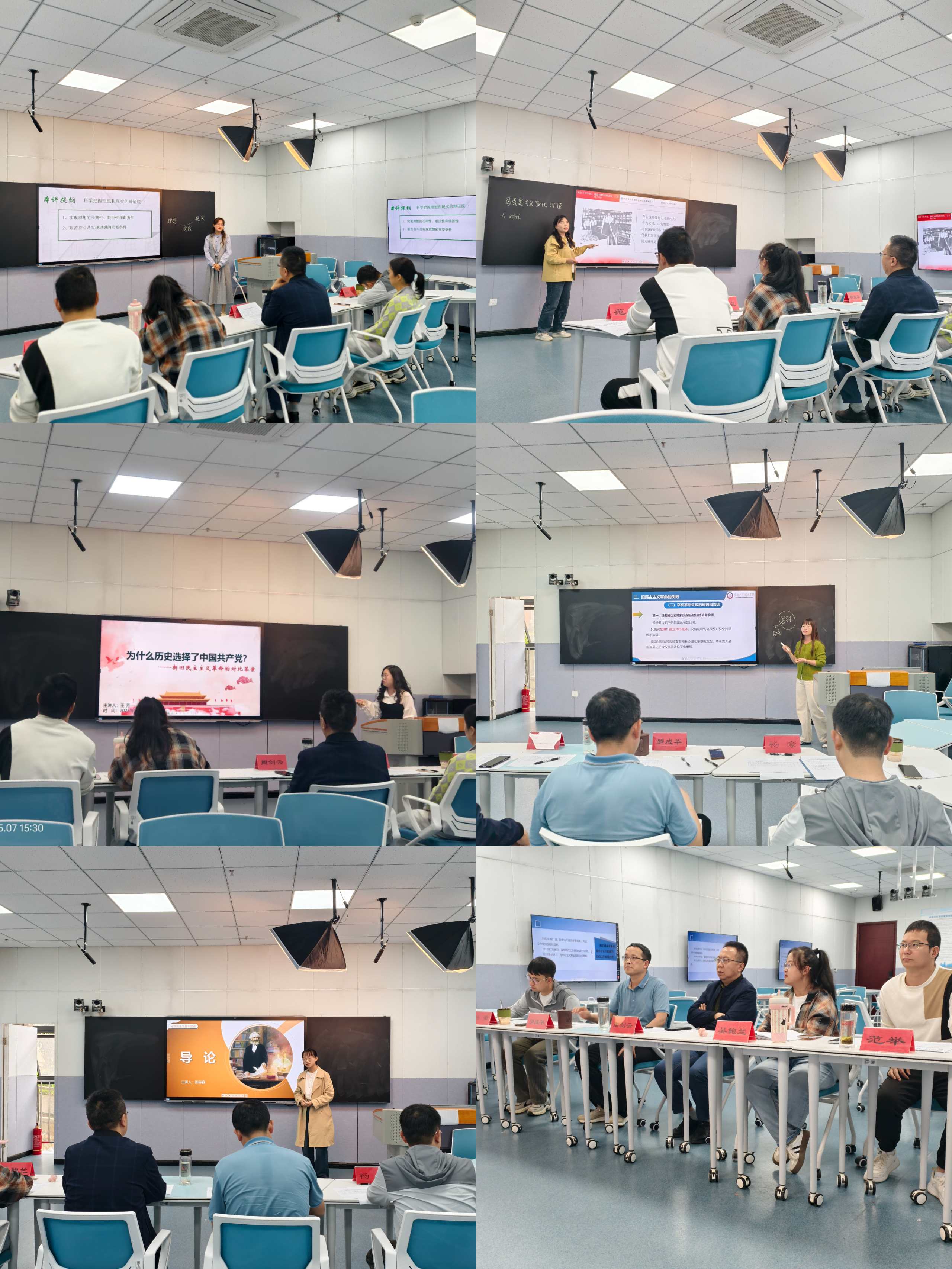 本次试讲活动包括教学展示与专家点评两个环节。首先,试讲教师根据提前准备的教学内容,依次进行了15分钟的教学展示。老师们主要围绕着《思想道德与法治》《中国近现代史纲要》《马克思主义基本原理》等课程选取试讲内容,撰写教案、制作课件,准备充分。授课过程中试讲教师教态自然、表述清晰、节奏连贯,展现了青年教师良好的专业知识水平和扎实的教学能力。