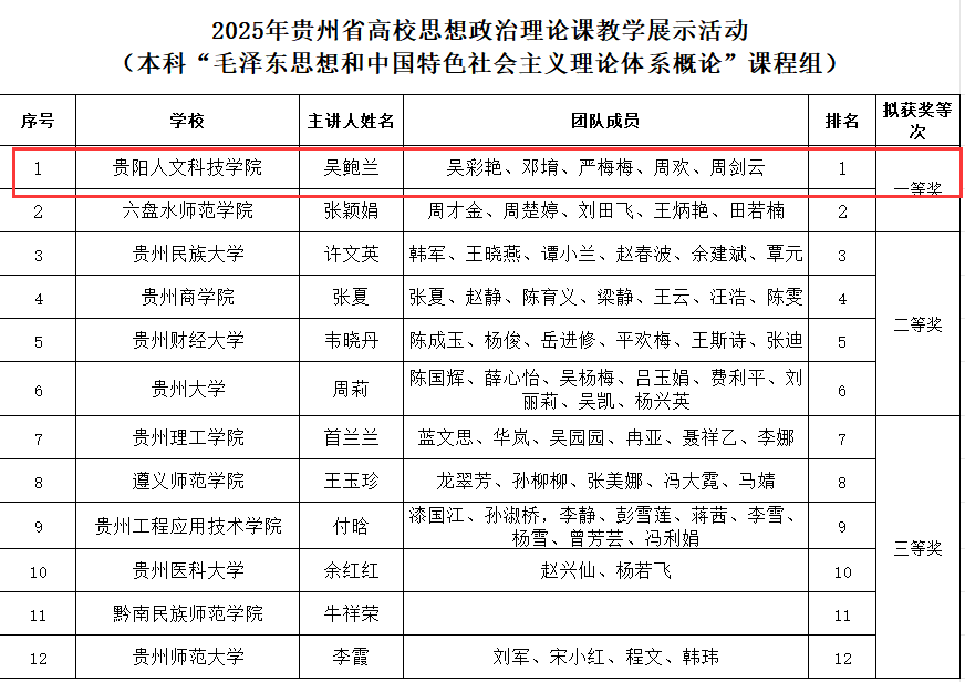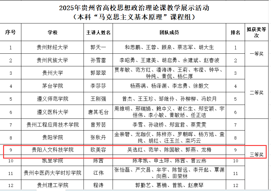 7月31日,贵州省教育厅公布了第四届全国高校思政课教学展示活动贵州省初赛获奖结果及拟推荐参加全国展示活动的名单。开云官网思政课教师团队在激烈竞争中脱颖而出,斩获1项一等奖、2项三等奖的优异成绩,不仅成为本次大赛中获奖数量最多的民办高校,更充分展现了开云官网思想政治理论课建设与改革的显著成效。