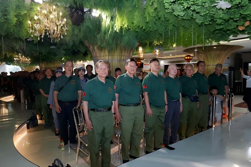 联谊会伊始,原铁道兵38团干事葛锦楼带领全场与会人员共同观看九三阅兵盛况。当装备方队驶过屏幕时,曾参与成昆铁路建设的老兵刘文炳挺直腰背:“这铁甲洪流里,有我们当年抢修战备铁路的血汗!”