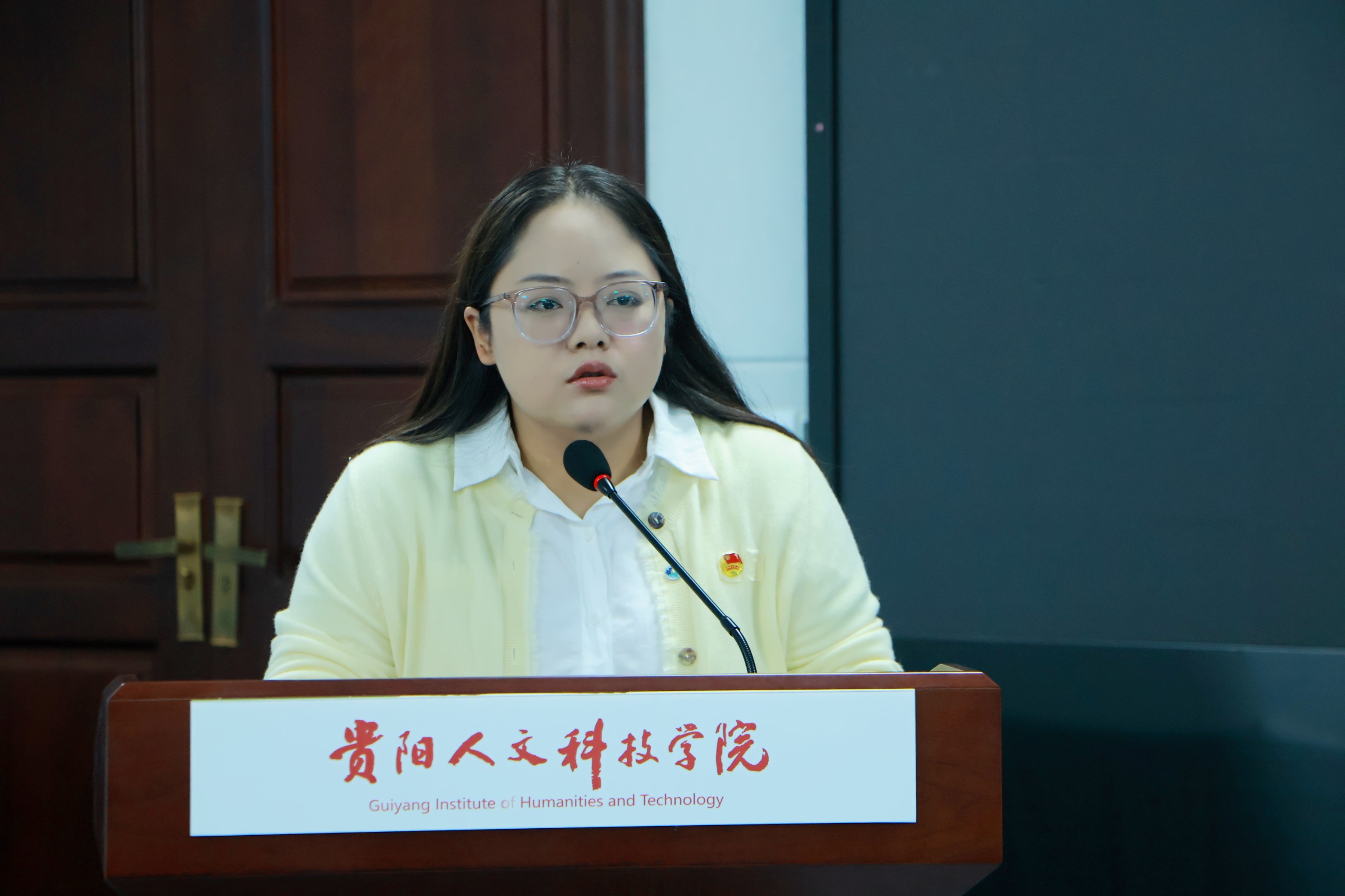 大会伊始,学院团委书记张鸿雁发表致辞,她充分肯定了上一届团委、学生会在思想引领、活动策划执行、服务广大同学等领域的突出贡献,同时对新一届干部提出 “讲政治、强担当、优服务” 的殷切期望,为整场换届仪式奠定了昂扬奋进的基调。在回顾过往工作的环节中,上一届团学组织骨干先后登台,从不同维度梳理工作脉络、分享经验思考。