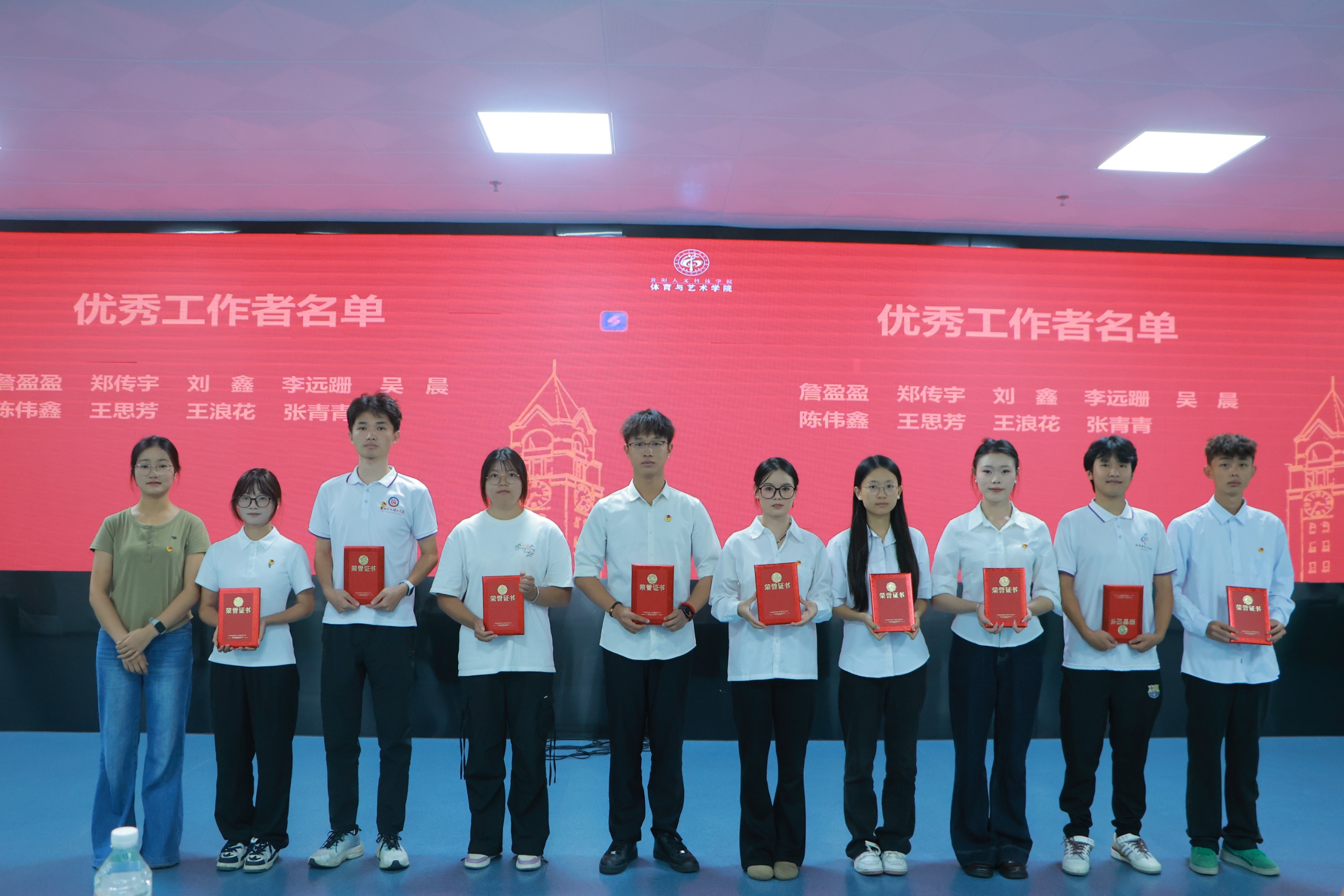 总结过往是为了更好地表彰先进、激励前行。在表彰环节,学院学生第二党支部书记吴宗敏首先为上一届团委、学生会“优秀工作者”颁发荣誉证书,肯定学生干部在岗位上的勤勉付出与突出业绩;随后,学院学生第一党支部书记杨宋妹为“优秀志愿者”颁发荣誉证书,致敬他们在各类志愿服务中彰显的奉献精神与责任担当,进一步传递 “志愿于心,服务于行” 的正能量。