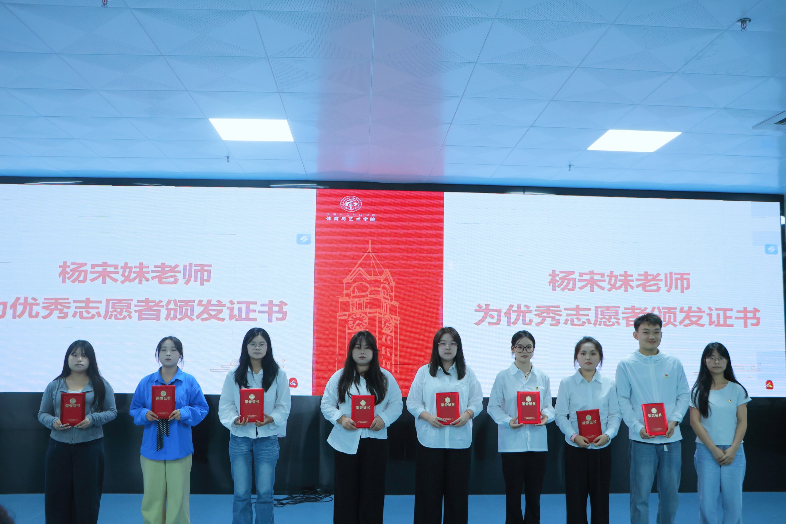 杨宋妹老师为“优秀志愿者”颁发证书