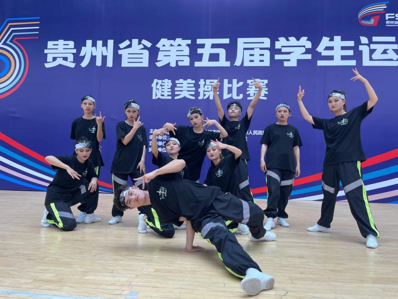 2022年7月26日至7月29日,贵阳人文科技学院健美操队参加了以“青春献礼二十大 学运之美耀黔中”为主题的在遵义职业技术学院举办的贵州省第五届学生运动会健美操比赛。学院黄小英、吴玉伟和唐兰芳三位教练带领17名健美操运动员参加此次大赛。