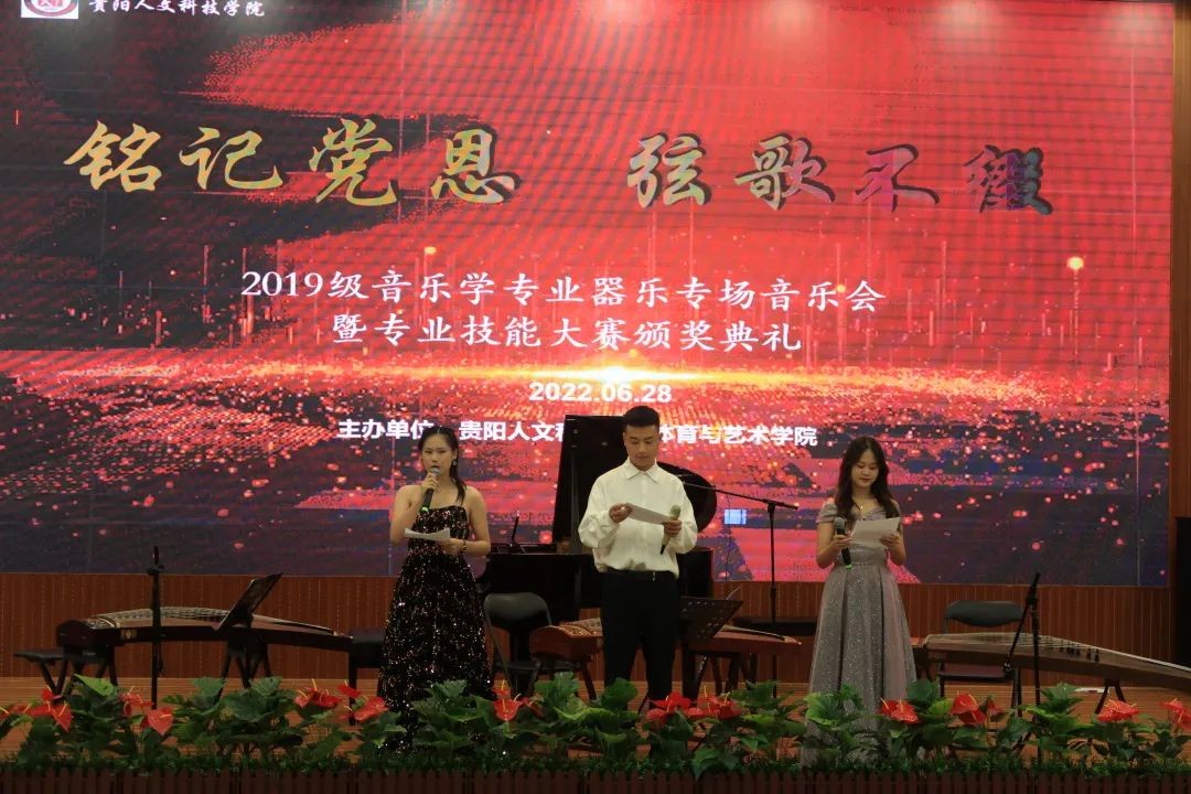 为提升学生的艺术实践能力,培养应用型人才。2022年6月28日 19:00,体育与艺术学院2019级音乐学专业在大学城校区教职工之家举行了“铭记党恩,弦歌不辍”——器乐专场汇报音乐会暨音乐学专业技能大赛颁奖典礼,开云官网黄玮副校长出席并颁奖。