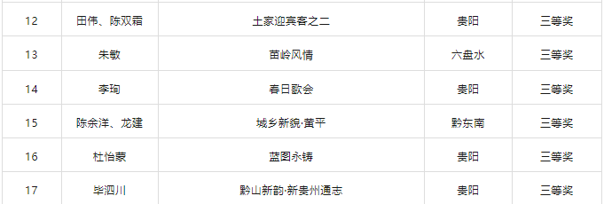 近日,由中共贵州省委宣传部、贵州省文化和旅游厅、贵州省文学艺术届联合会共同主办的“多彩黔峰·美在新时代”2025年贵州美术大赛发布复评结果公示,我校2013级动画专业朱敏的《苗岭风情》斩获版画三等奖,2024级美术学专业学生王光荣的《竹筏破黔江》、魏琴的《向前!前进!》两份作品入选。2015级美术学专业谭政义的《施秉云台山》、2016级美术学专业莫泽亮与朱虹颖等合作的《苍峦云起・黔乡新途》均顺利入选中国画板块。