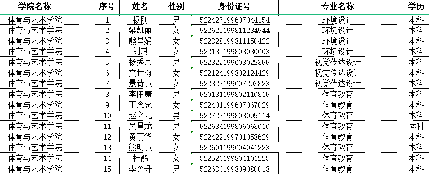 我学院严格按照贵州省教育厅办公室下发的《关于开展2021届贵州省普通高等学校优秀毕业生评选推荐工作的通知》规定,评定工作小组坚持公开、公平、公正的原则认真组织评选。在广泛征求和听取毕业班班主任老师和同学们意见的基础上,对学生的申请材料以及在校表现进行严格的审核和把关。经过认真评选,最终确定黄丽华等30位同学为我院参加评选2021届校级优秀大学毕业生的候选人,现将30位同学名单公示如下: