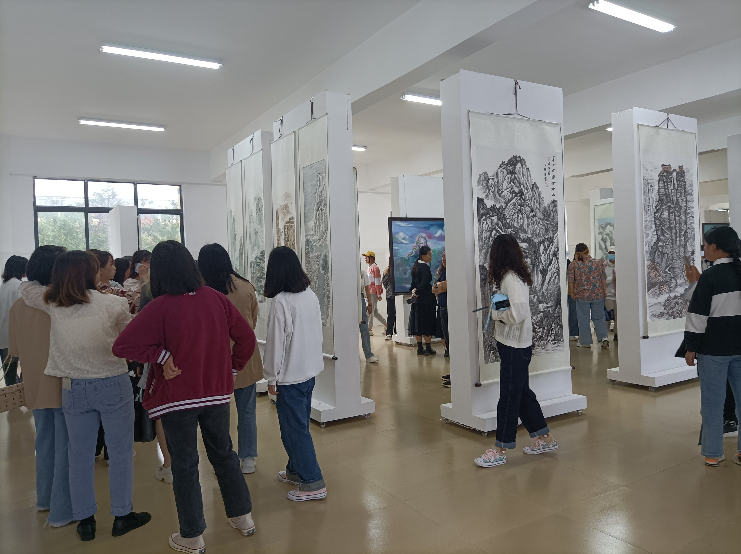 开幕式现场画展吸引了许多老师、同学前来观展。本次毕业作品展的全部展品为我院2021届美术学专业74位学生四年来的辛勤付出,本次画展持续至6月6日结束。