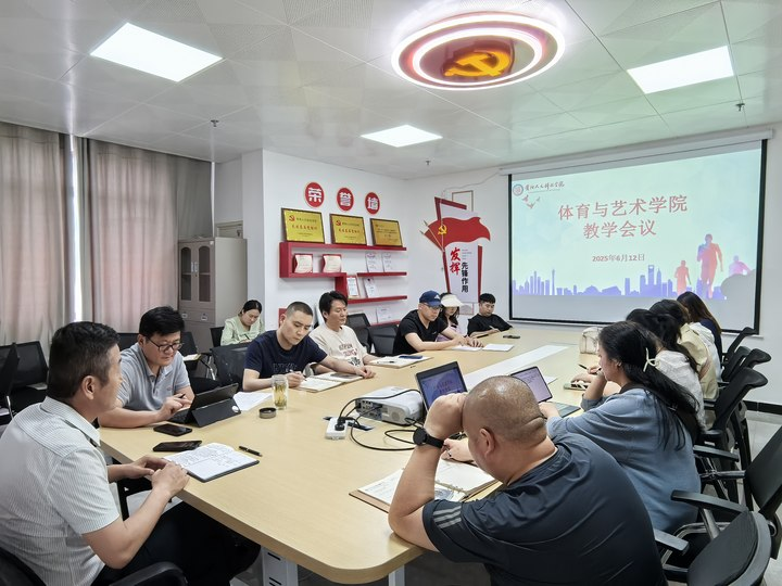 2025年6月13日,体育与艺术学院在师德楼910召开期末教学工作会议,会议由学院副院长赵金亮主持,学院院长王雪,各教研室主任、副主任及教学秘书参加了本次会议。