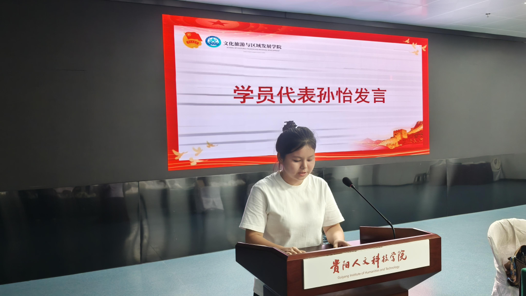 最后,学员代表孙怡进行发言。她表达了全体学员对参加此次培训的激动与期待,承诺会以饱满的热情、端正的态度投入到培训学习中,严格遵守培训纪律,积极参与各项活动,努力提升自己,不辜负学院领导与老师的期望,以实际行动践行共青团员的责任与担当。