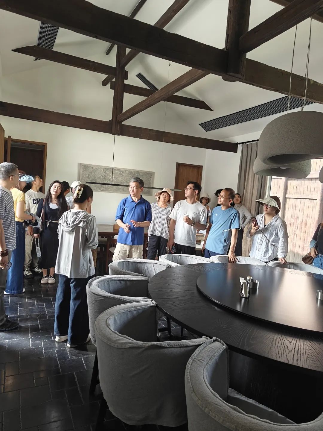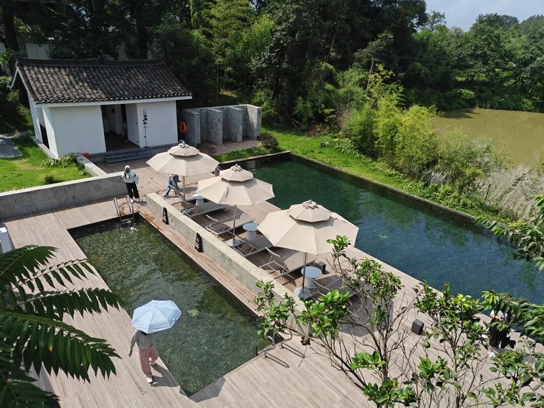 教师团队在耕读第管理团队的带领下,全面考察了民宿的设计理念、投资情况、经营情况及社会效益。调研发现,匠庐·耕读第民宿是一座融合了当代设计和传统民居美感相结合的乡建空间,民宿保持着当地民间传统建筑形式,土墙青砖再铺以土瓦,用传统的营造方式保留着老房子的古朴,“耕读第”匾额家族数百年来的门第传承。整个民宿内建筑错落有致,餐厅、茶室、日落泳池等公共空间与客房区域由小径相连,空间优雅而温暖。民宿内,房屋梁柱及门窗广泛采用锦屏当地特色木材杉木,以贴近自然的古朴风格呼应乡村历史。在民宿公共空间中及客房室内设计中,又大胆了嵌入金属质感的灯饰和镂空帷幔,与青瓦白墙、原木家具等形成了“传统外壳、现代内核”的美学碰撞。建设完成后,匠庐耕读第凭借其独特的选址和设计,先后获得了“雪鹿奖”“黑松露奖”等一系列业内顶尖奖项。民宿一期项目仅10间客房,每间客房都配有露台或庭院,客房内配备了高档舒适的住宿设施,能够满足度假客人的各类需求。