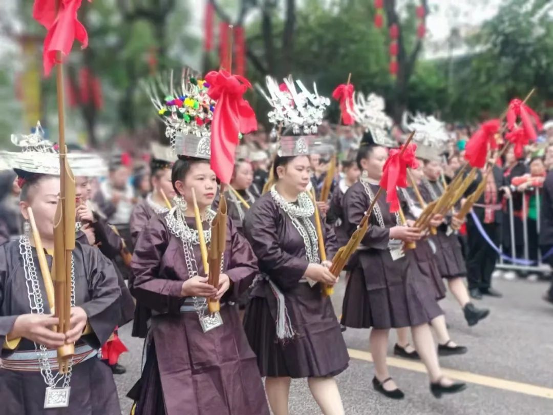 芦笙舞是苗族文化的绚丽瑰宝,也是苗年中不可或缺的精彩节目。芦笙作为苗族传统的吹奏乐器,由笙管、笙斗和簧片组成,音色明亮悠扬,仿佛能穿透时空,传递着苗族人民的情感与精神。
