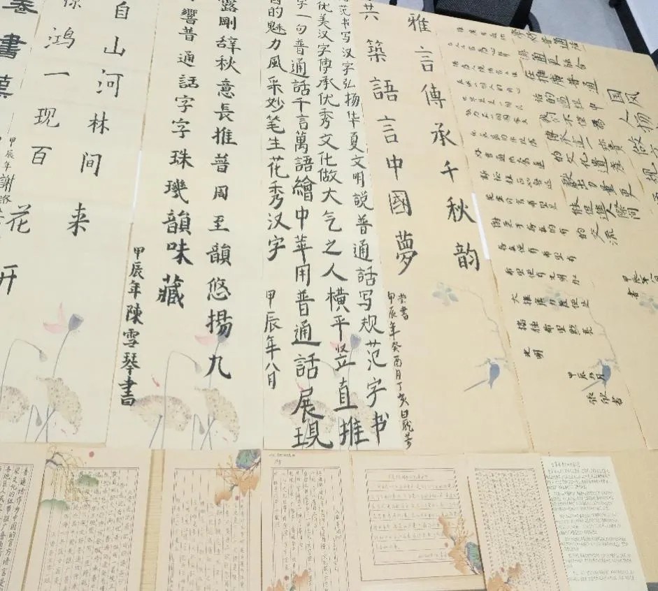 在比赛过程中,同学们充分展示了自己的书法才华和对汉字艺术的热爱。硬笔书法作品布局严谨,字与字之间错落有致,展现了作者的书法功底和艺术修养;在软笔书法中,作者用毛笔挥洒自如,将一幅幅优美的汉字呈现在纸上,让观者感到赏心悦目。