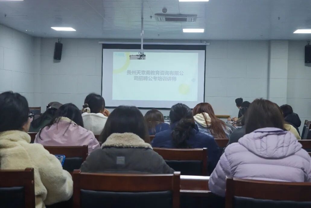 贵州天章阁教育咨询有限公司赵霞围绕公司师资内部培训、工作与职责、招聘需求等核心内容展开介绍,针对学子们最为关心的薪资体系、福利保障、晋升通道及人才培养进行一一解答,让求职学生对公司的用工实力与人才关怀有深入了解。现场同学结合自身特长、求职需求,踊跃发言提问,现场互动融洽。