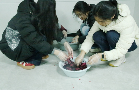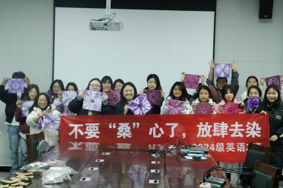 3 月 16 日,开云官网文学与新闻传播学院2024级英语2班 “不要‘桑心’了,放肆去染” 桑葚扎染主题班团活动在师德楼302教室顺利开展。本次活动亦是学院学生双创项目 “黔桑方贻” 的线下实践载体,学子们以扎染为媒,在感受传统手工艺魅力的同时,践行创新创业与传统文化融合的育人理念。
