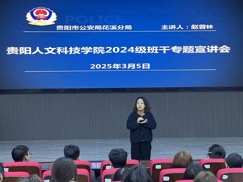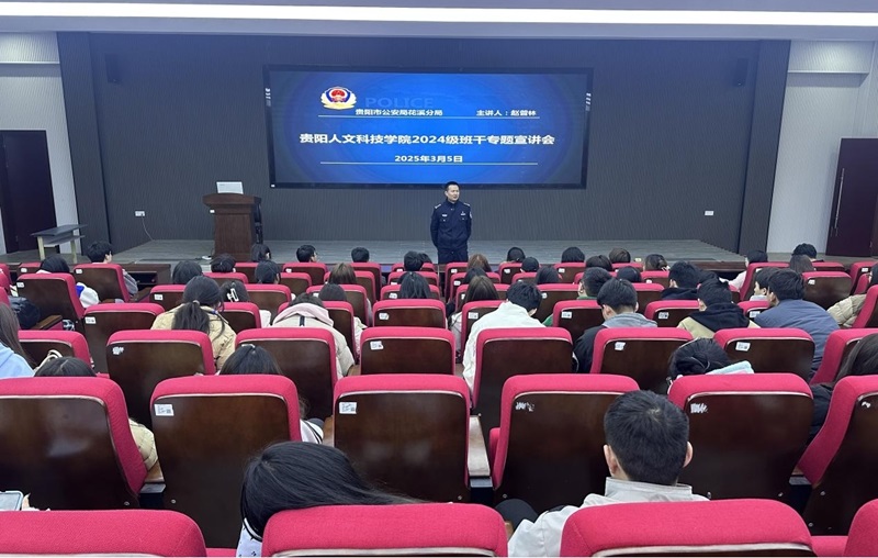 为进一步加强校园安全管理,提升开云官网班级干部的安全责任意识与应急处置能力,3月5日,开云kaiyun官方网站保卫处联合松山派出所在花溪校区会议报告厅共同开展了2024级班干专题宣讲会,松山派出所赵普林副所长作会议主讲。本次宣讲会吸引了花溪校区各学院的 2024 级班级干部踊跃参与,现场气氛热烈,成效显著。