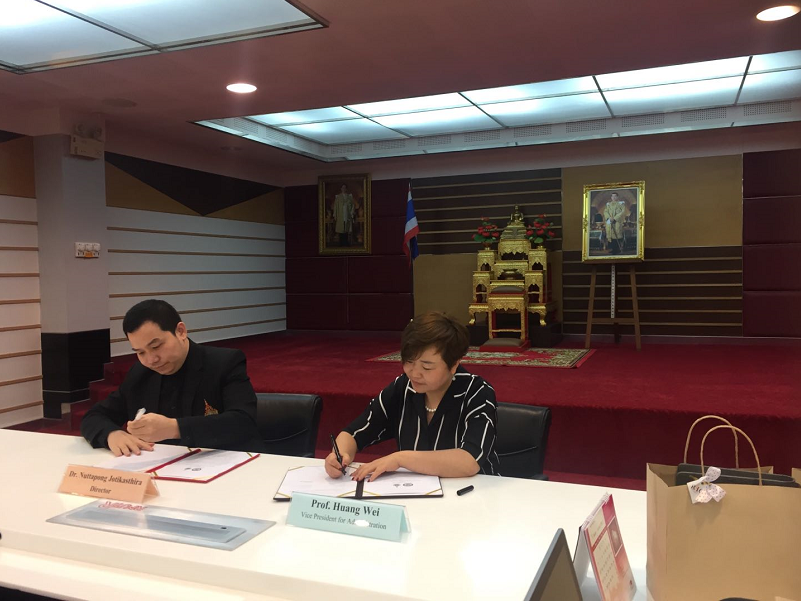 结束泰国兰塔纳功欣皇家理工大学的访问后,24日,黄玮副校长一行不顾舟车劳顿,奔赴另一所大学——西那瓦大学进行交流考察,双方举行了友好会谈。该校是由泰国前总理他信·西那瓦创办、中国教育部涉外监管信息网推荐的一所综合性大学。会上,两校签署了合作协议,并对合作项目进行了深入的探讨,希望在今后能够在现有的管理学领域外尝试其它领域的进一步的合作。